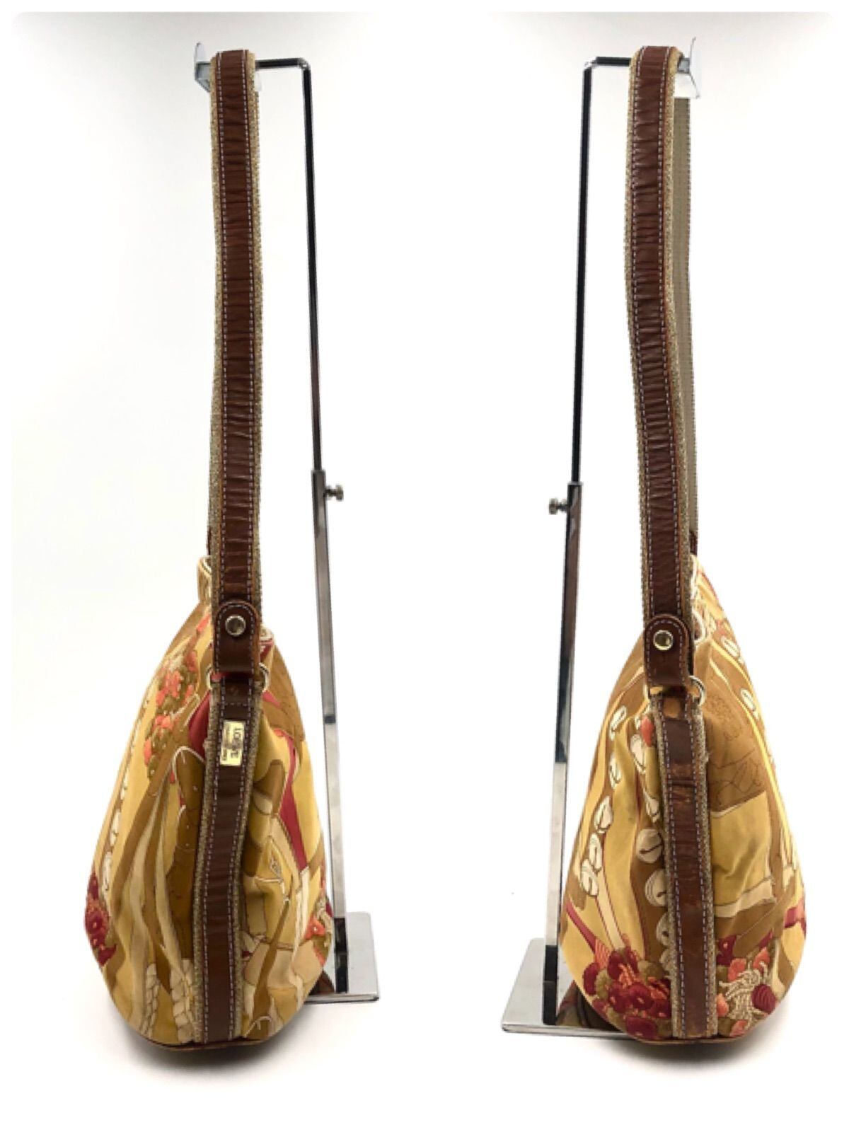 ■鑑定済み■LOEWE ロエベ スカーフ柄 バケツ型ワンショルダーバッグ 総柄 アナグラム キャンバス×レザー ブラウン系マルチカラー ゴールド金具 レディース