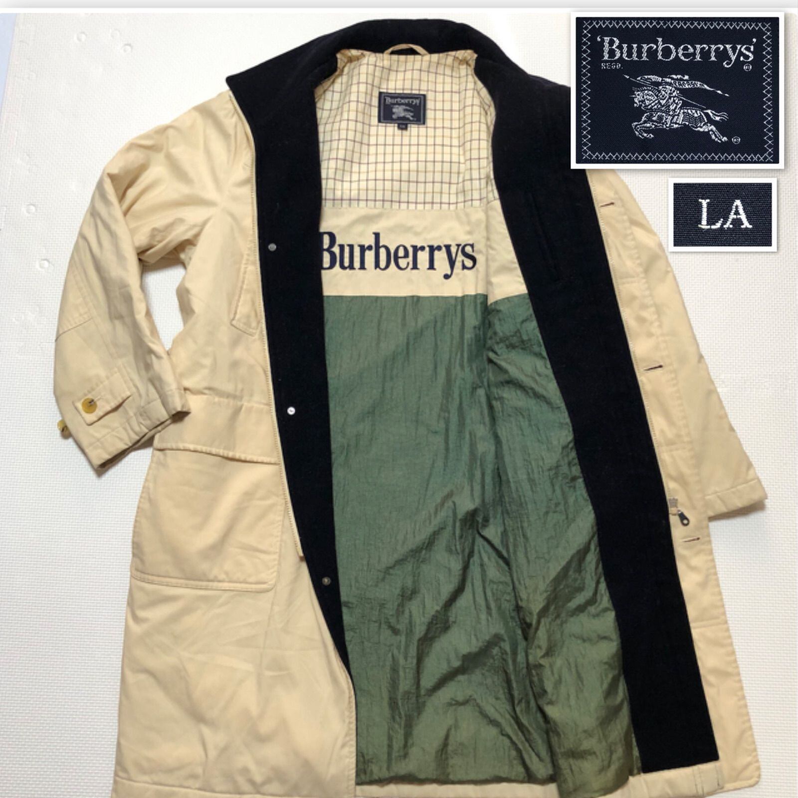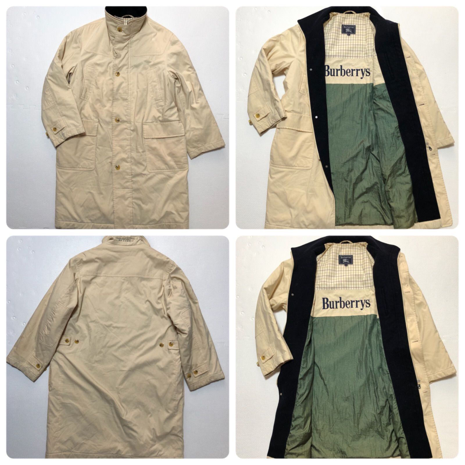 Burberrys バーバリー 襟後ろ刺繍ビッグロゴ 中綿ミリタリーコート モッズコート風 スタンドカラー ベージュ×内側ビッグロゴ&チェック sizeLA(サイズL相当) 日本製 三陽商会 メンズ