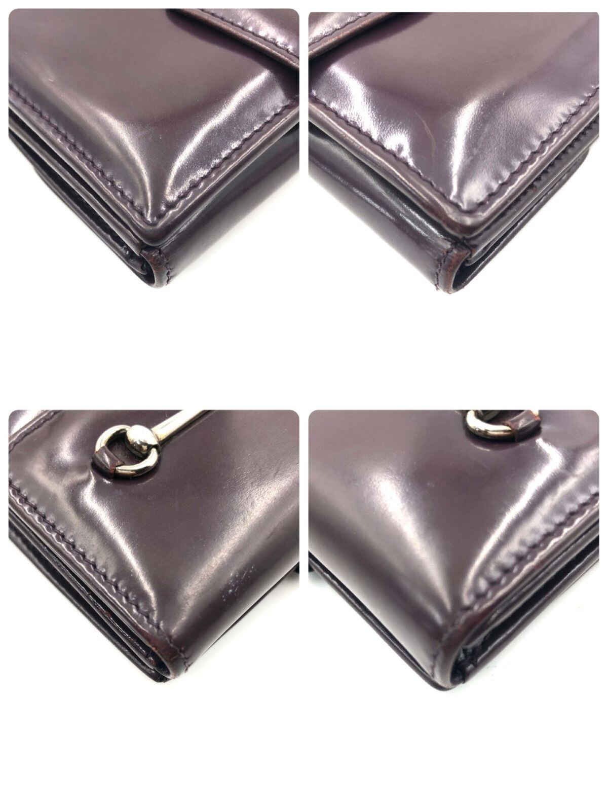 ■良品■GUCCI グッチ ホースビット 折り財布 パスケース レザー イタリア製 刻印あり 035・1502・1889 ワインレッド系ブラウン シルバー金具 メンズ