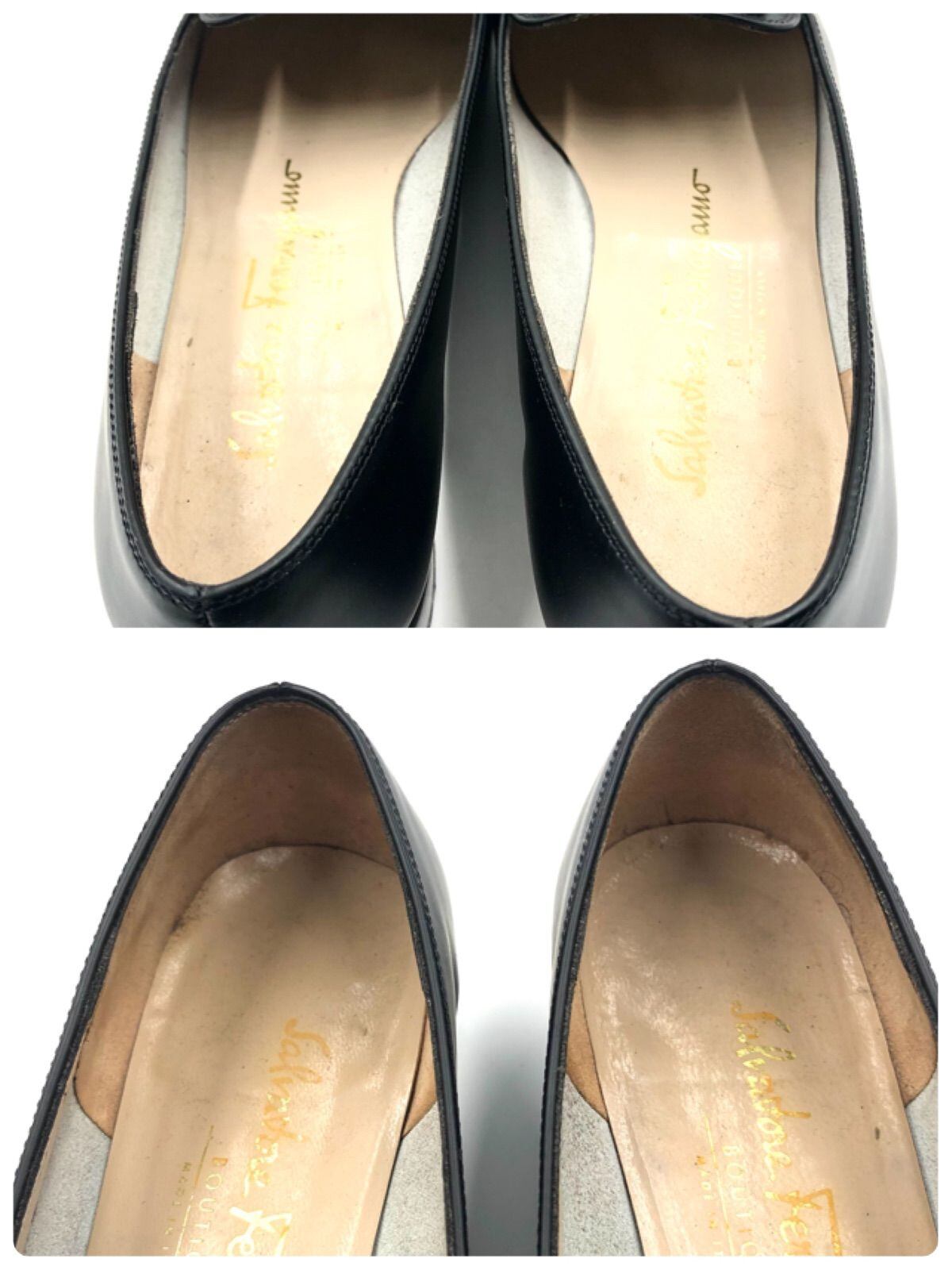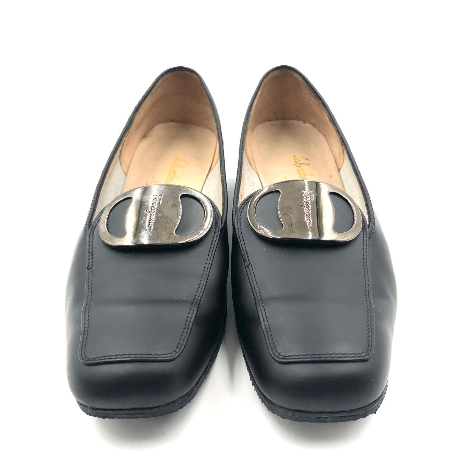 ■美品■Salvatore Ferragamo サルヴァトーレフェラガモ ヴァラ金具 パンプス スクエアトゥ ブラック シルバー金具 レザー 本革 イタリア製 サイズ5.5C(23cm) レディース