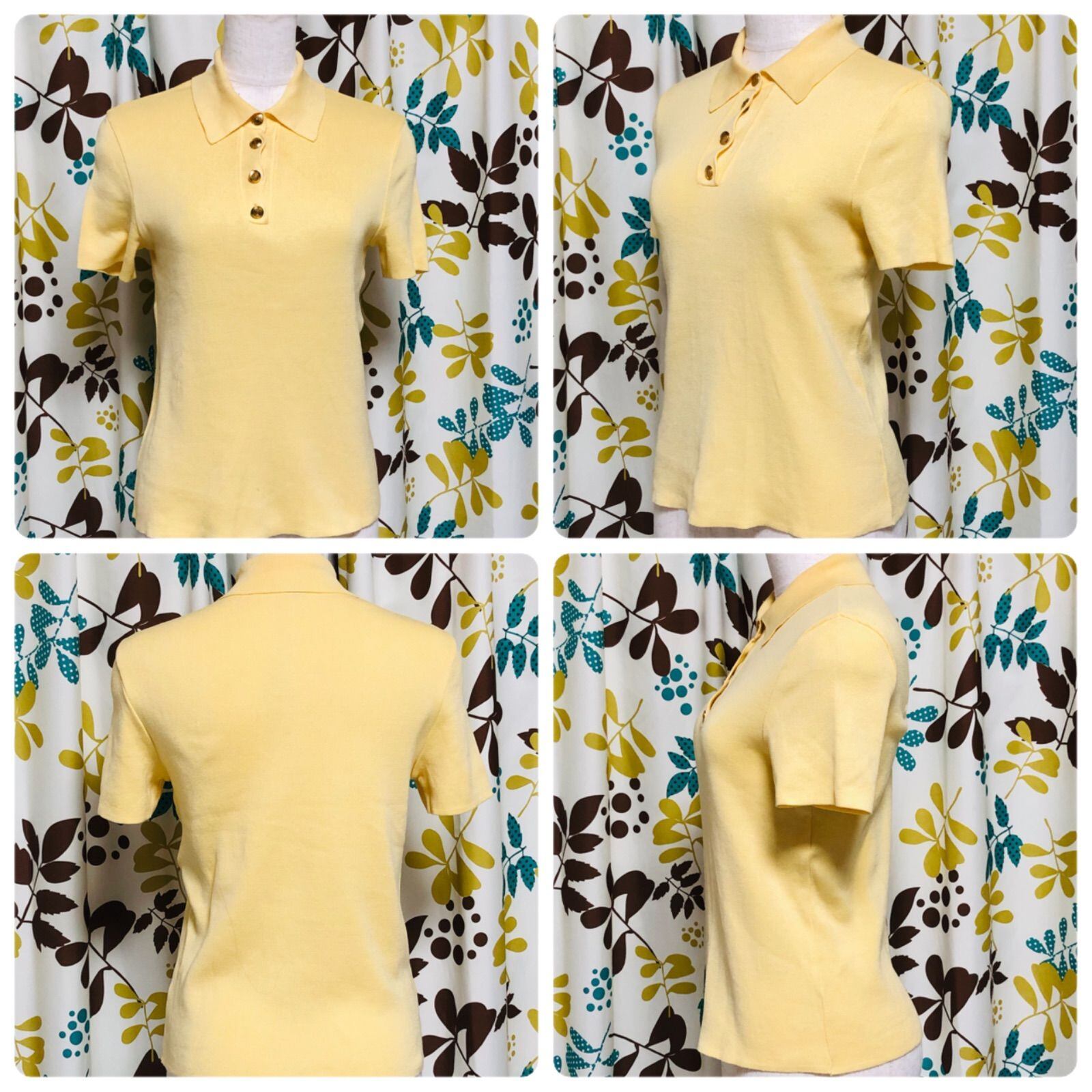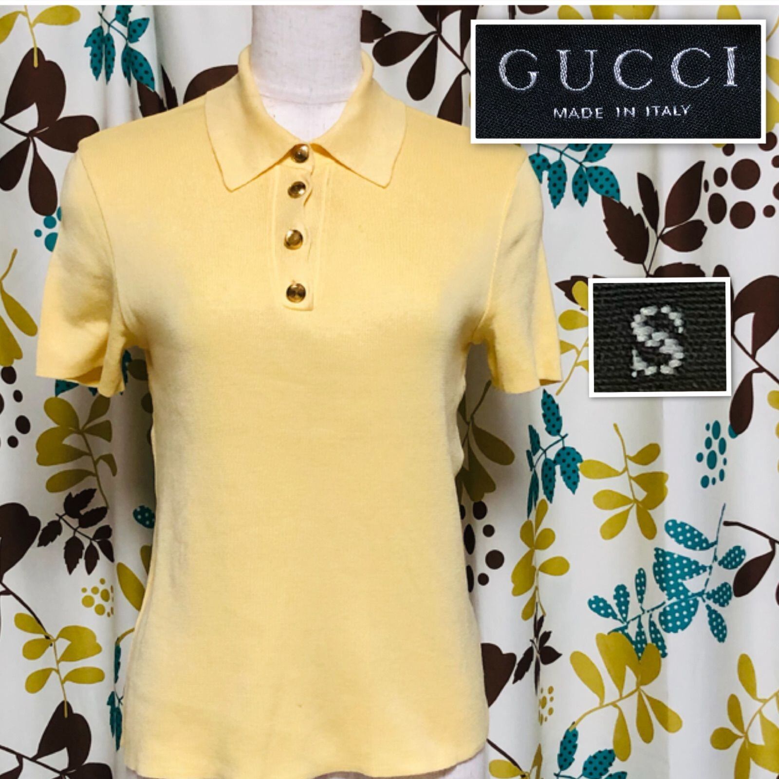 ■良品■GUCCI グッチ GGロゴ金ボタン 半袖ニットポロシャツ sizeS イタリア製 タグあり イエロー コットン100% レディース