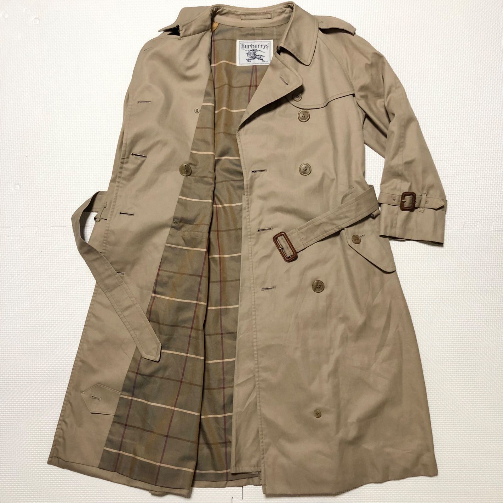 ■極美品■Burberrys バーバリー ダブルトレンチコート ロングコート ベルト ベルテッド ベージュ系×裏地チェック総柄 size11AB(サイズM相当 表記 B85 H95 T160) 三陽商会 コットン100% レディース