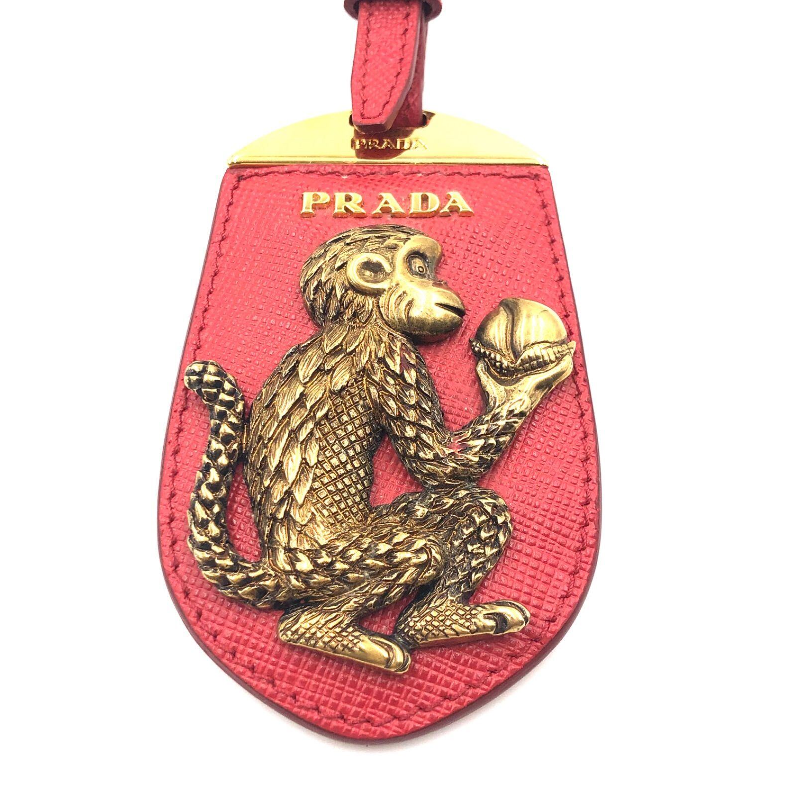 ■極美品■超希少入手困難・2016年旧正月コレクション■定価4.3万円■PRADA プラダ 猿バッグチャーム モンキー レッド×ゴールド金具 サフィアーノレザー ロゴ