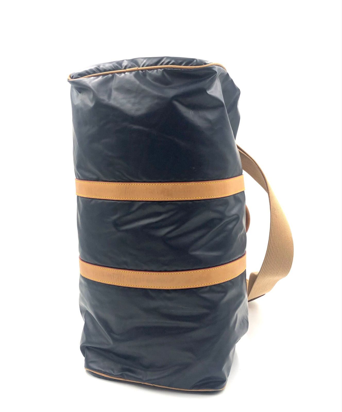 ■美品■Hunting World ハンティングワールド バチュークロス×レザー 2way ボストンバッグ ショルダーストラップ付き ブラック系カラー×ライトブラウン ロゴプレート イタリア製 刻印あり ゴールド金具 ビジネス 出張 旅行 メンズ