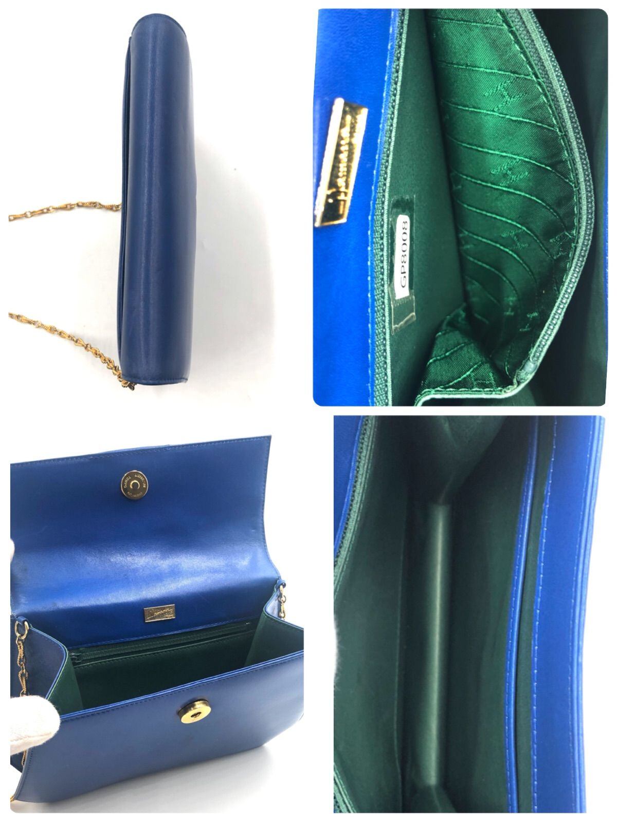 Hamano ハマノ チェーンショルダーバッグ パーティーバッグ ブルー ゴールド金具 レザー レディース