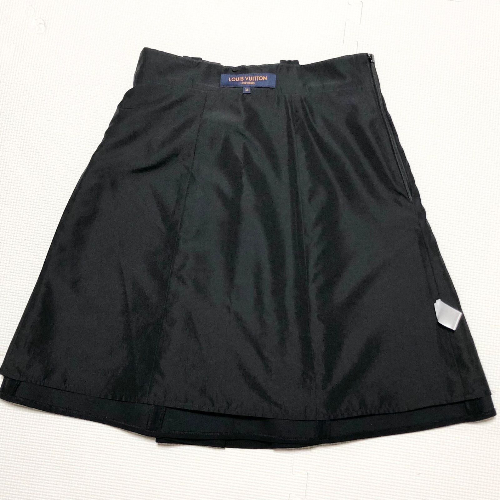 ■美品■希少■LOUIS VUITTON UNIFORMS ルイヴィトンユニフォーム センターボックスプリーツスカート ミニスカート size34(サイズXS) ポリエステル100% ブラック レディース ルイヴィトンスタッフ用非売品