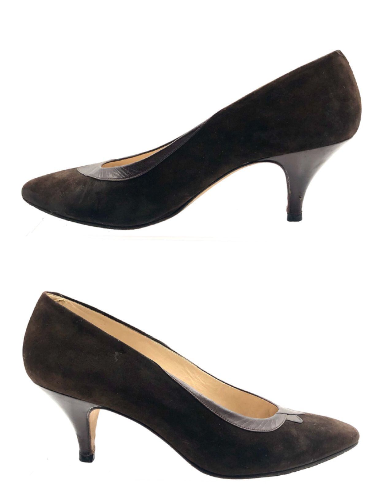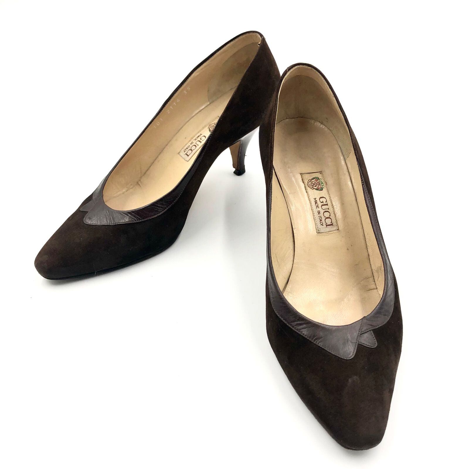 GUCCI グッチ ヌバックレザー ヒール パンプス ポインテッドトゥ ブラウン イタリア製 サイズ35C(22cm) レディース