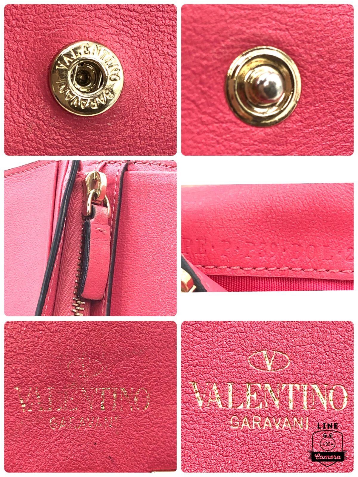 ■美品■VALENTINO GARAVANI ヴァレンティノガラヴァーニ ロックスタッズ 二つ折り財布 ミニ財布 レザー 本革 ピンク ゴールド金具 刻印あり レディース