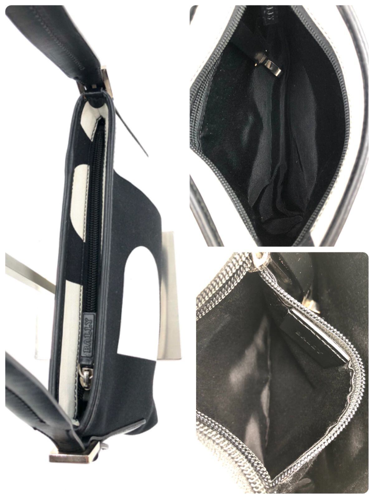 ■極上美品■BALLY バリー Bロゴ アクセサリーポーチ ミニバッグ ワンハンドバッグ キャンバス×レザー ブラック×ホワイト バイカラー シルバー金具 レディース 保存袋付き