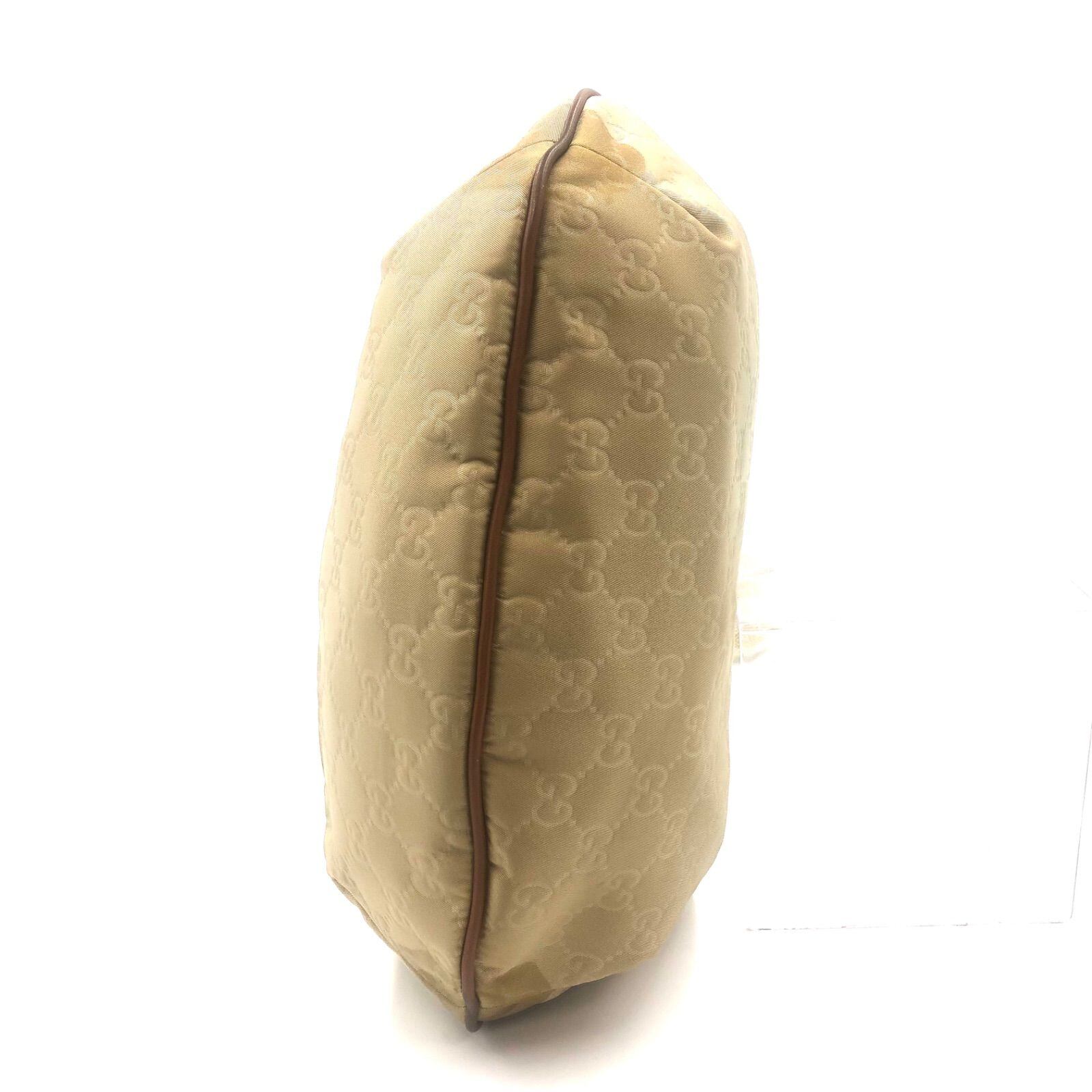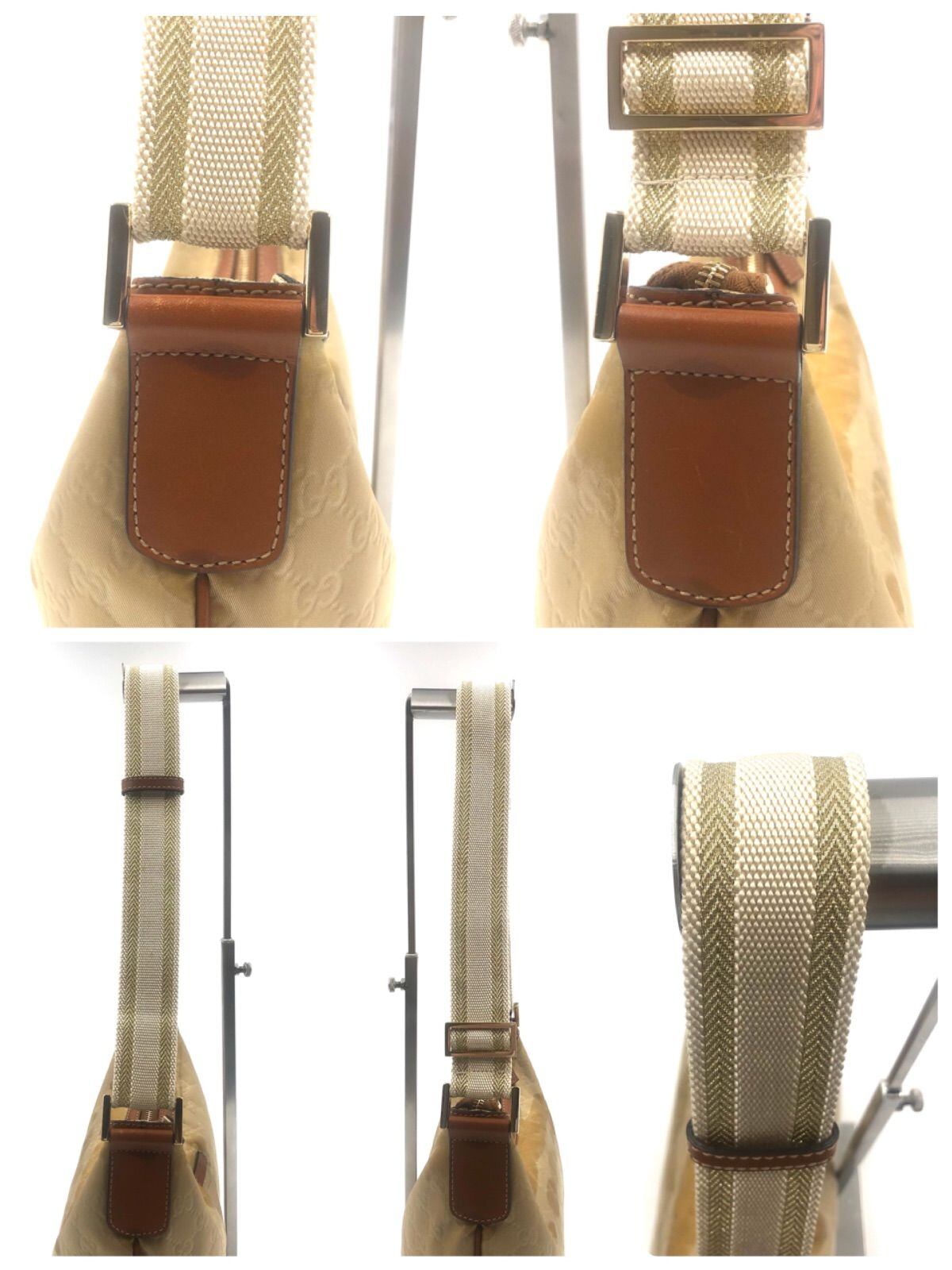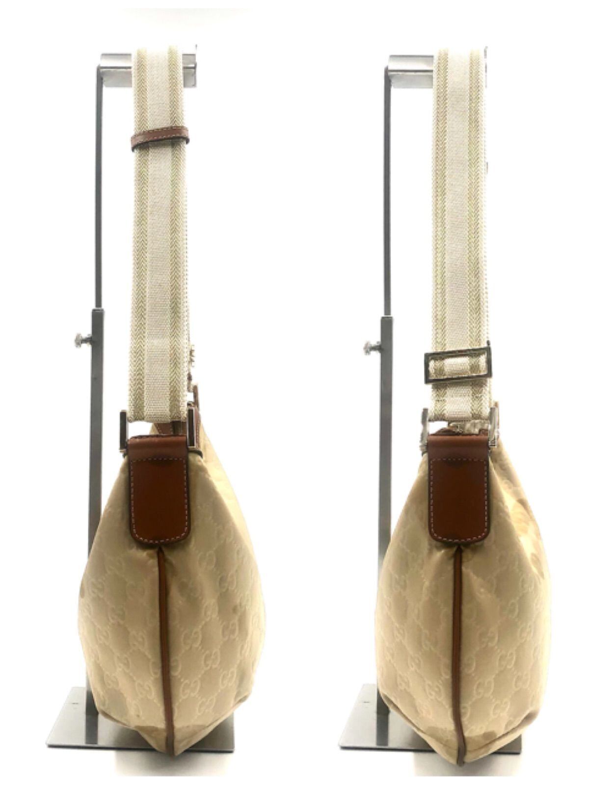 ■希少■GUCCI グッチ GGナイロン ワンショルダーバッグ 三日月型 斜めがけ クロスボディ ナイロンキャンバス×レザー ベージュ×ブラウン イタリア製 刻印あり 181092・493075 レディース