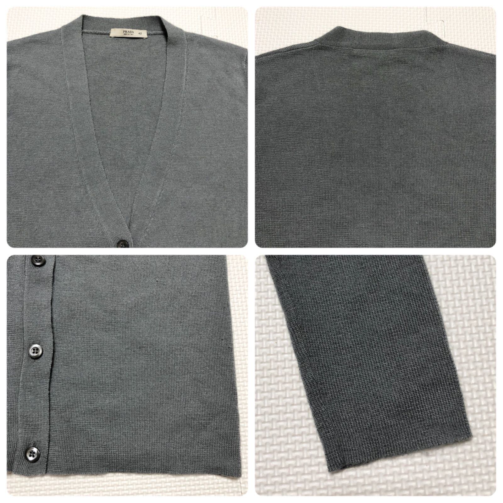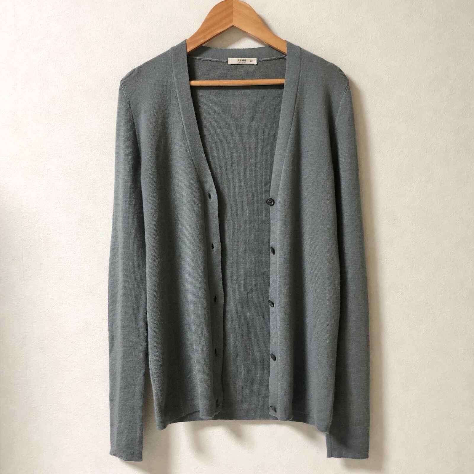 ■希少カシミヤ70%シルク30%■PRADA プラダ ニットカーディガン Vネック size42(サイズXL相当) イタリア製 グレー 5つボタン レディース