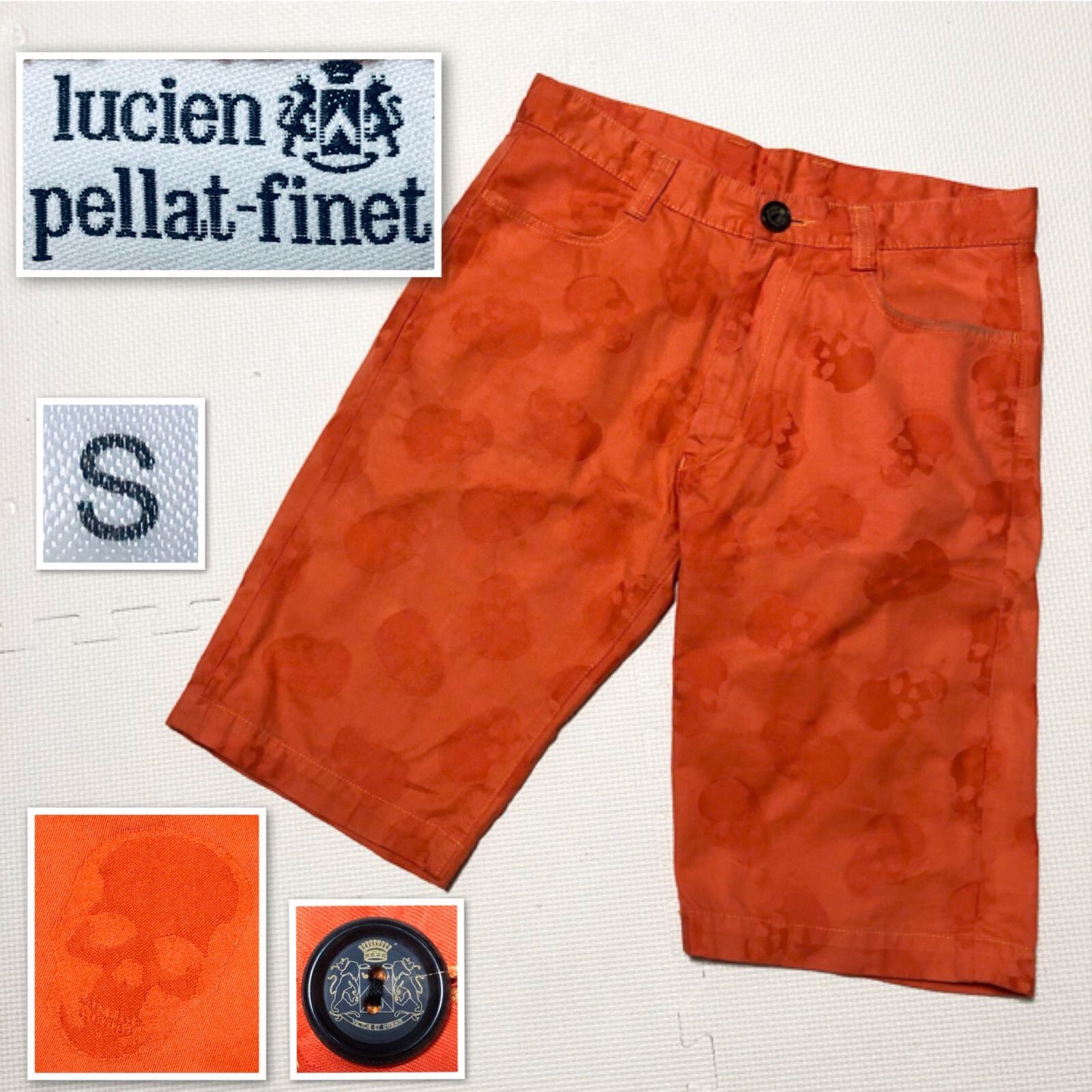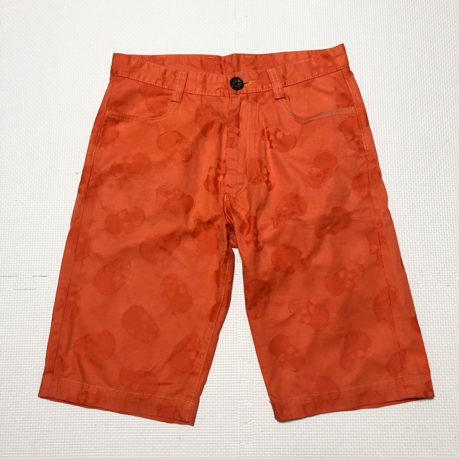 ■美品■lucien pellat-finet ルシアンペラフィネ スカル総柄 ハーフパンツ コットン シャドーモチーフ sizeS 日本製 オレンジ メンズ