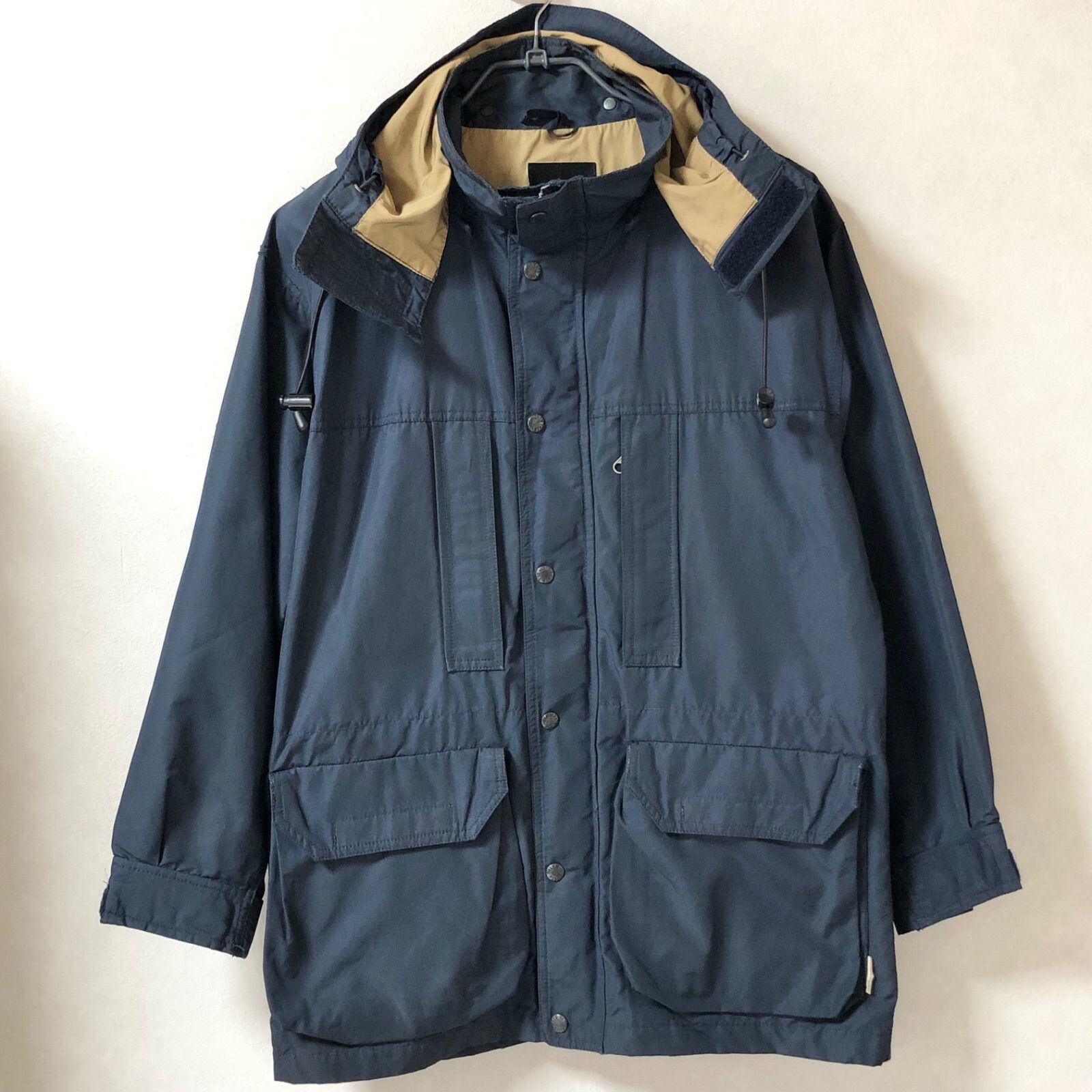 ■美品■The North Face ザノースフェイス マウンテンパーカ ナイロン混コットン sizeM ネイビー×ベージュ ドローコード フード フーディ ダブルジッパー+ボタン メンズ ゴールドウイン製