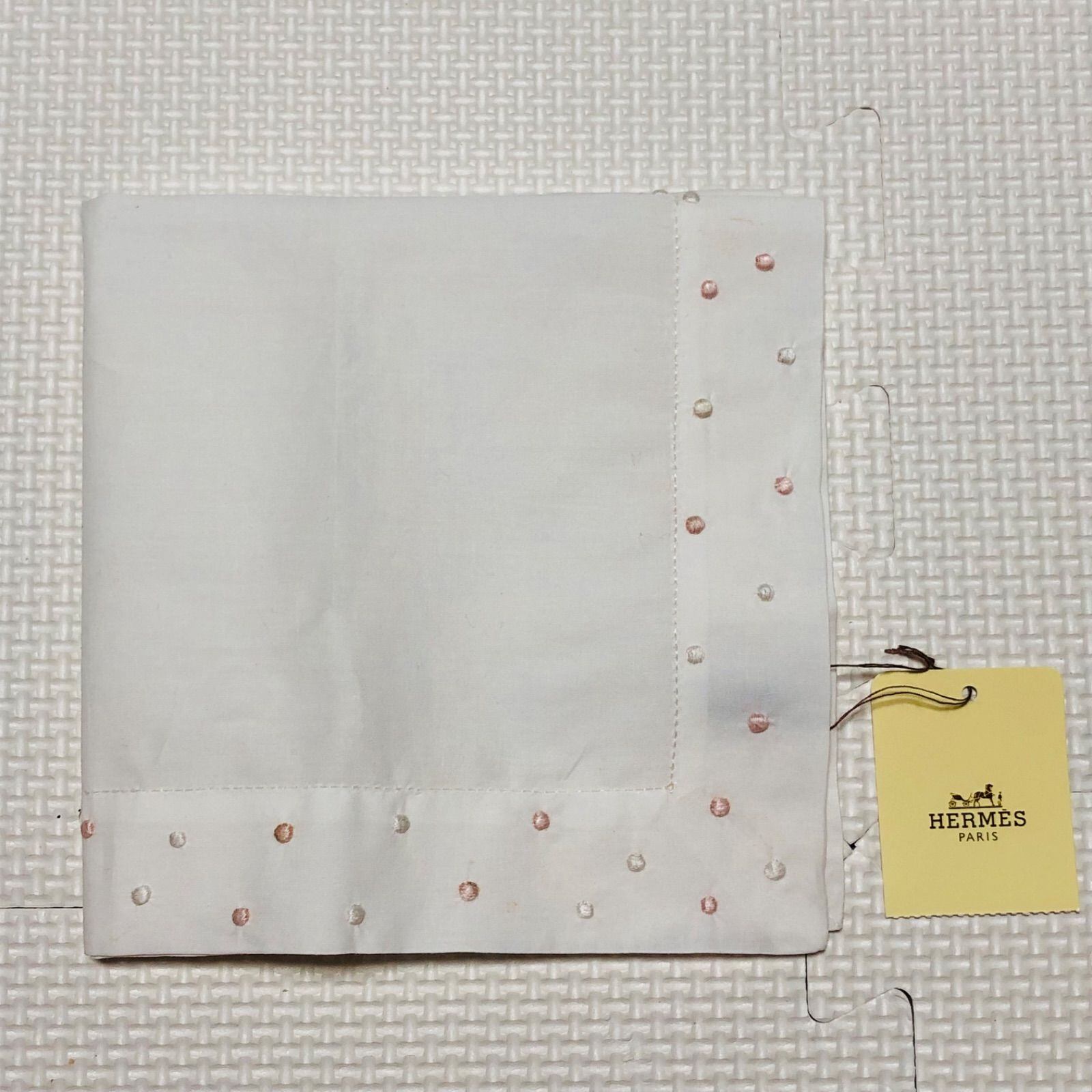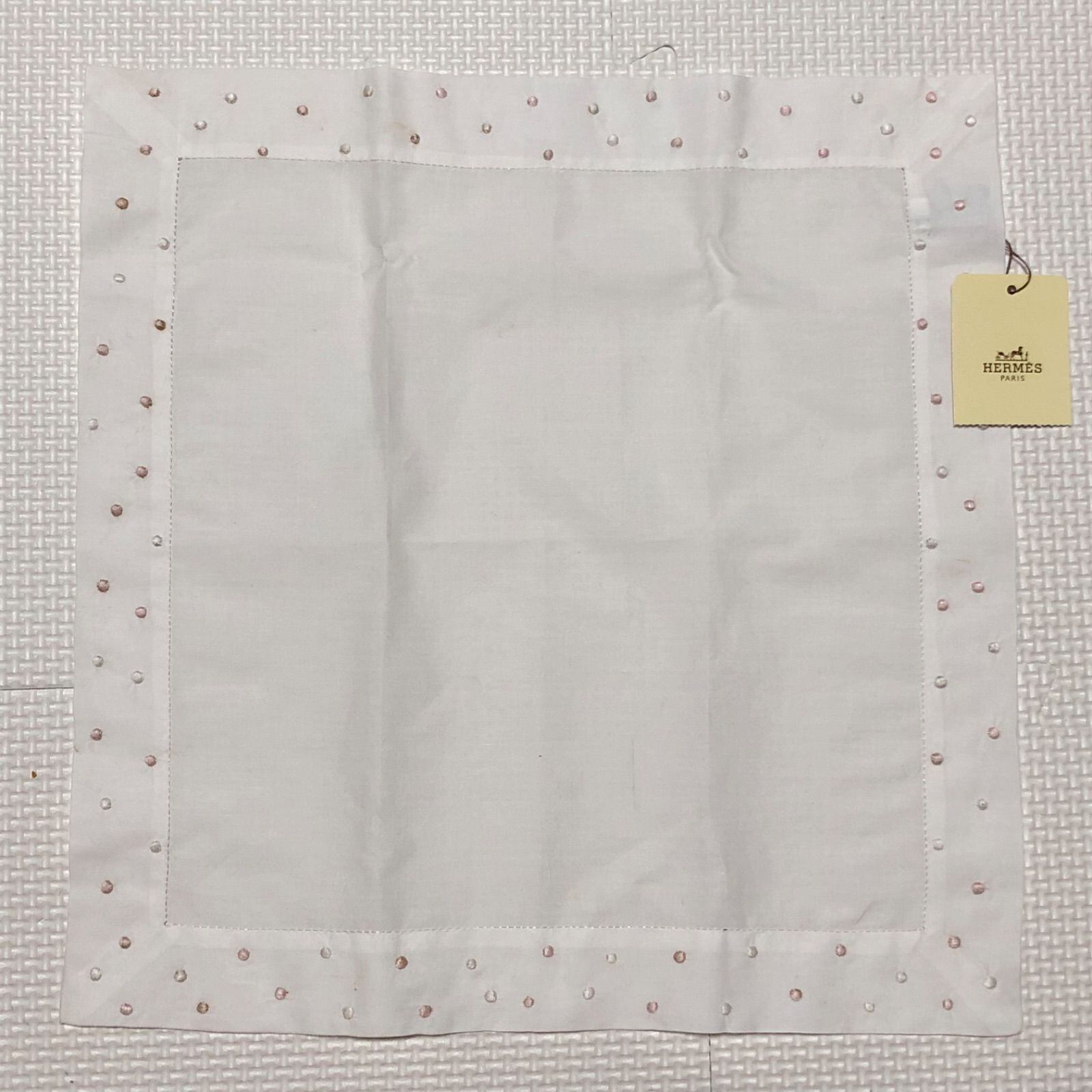 ■未使用タグ付き訳あり品■HERMES エルメス GALAXIE MOUCHOIR ハンカチ 刺繍ドット ホワイト 箱付き