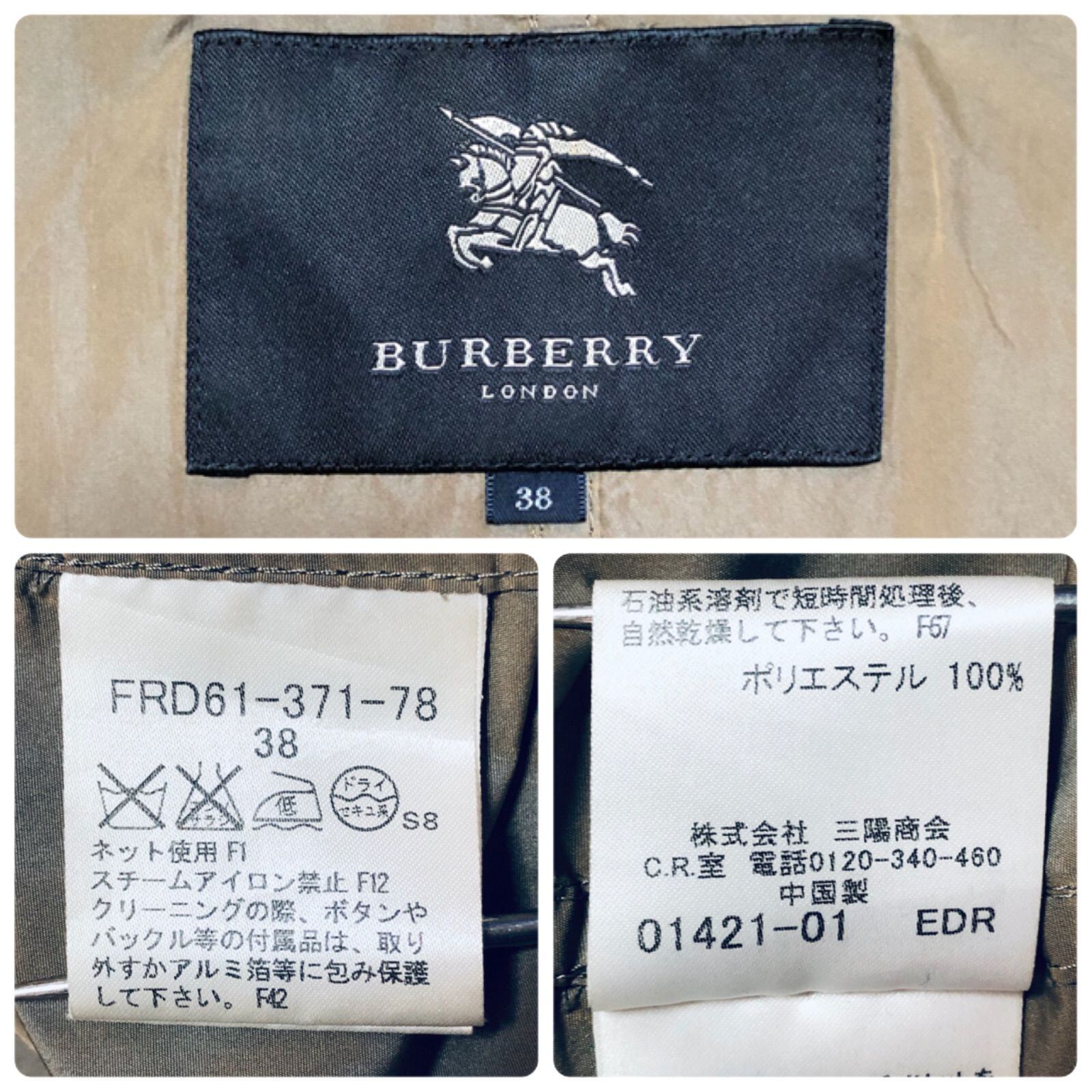 ■美品■BURBERRY LONDON バーバリーロンドン トレンチコート風ミリタリーコート ベルト ベルテッド フード フーディー size38(M相当) 三陽商会 カーキ エポーレット モッズコート風スタンドカラー レディース
