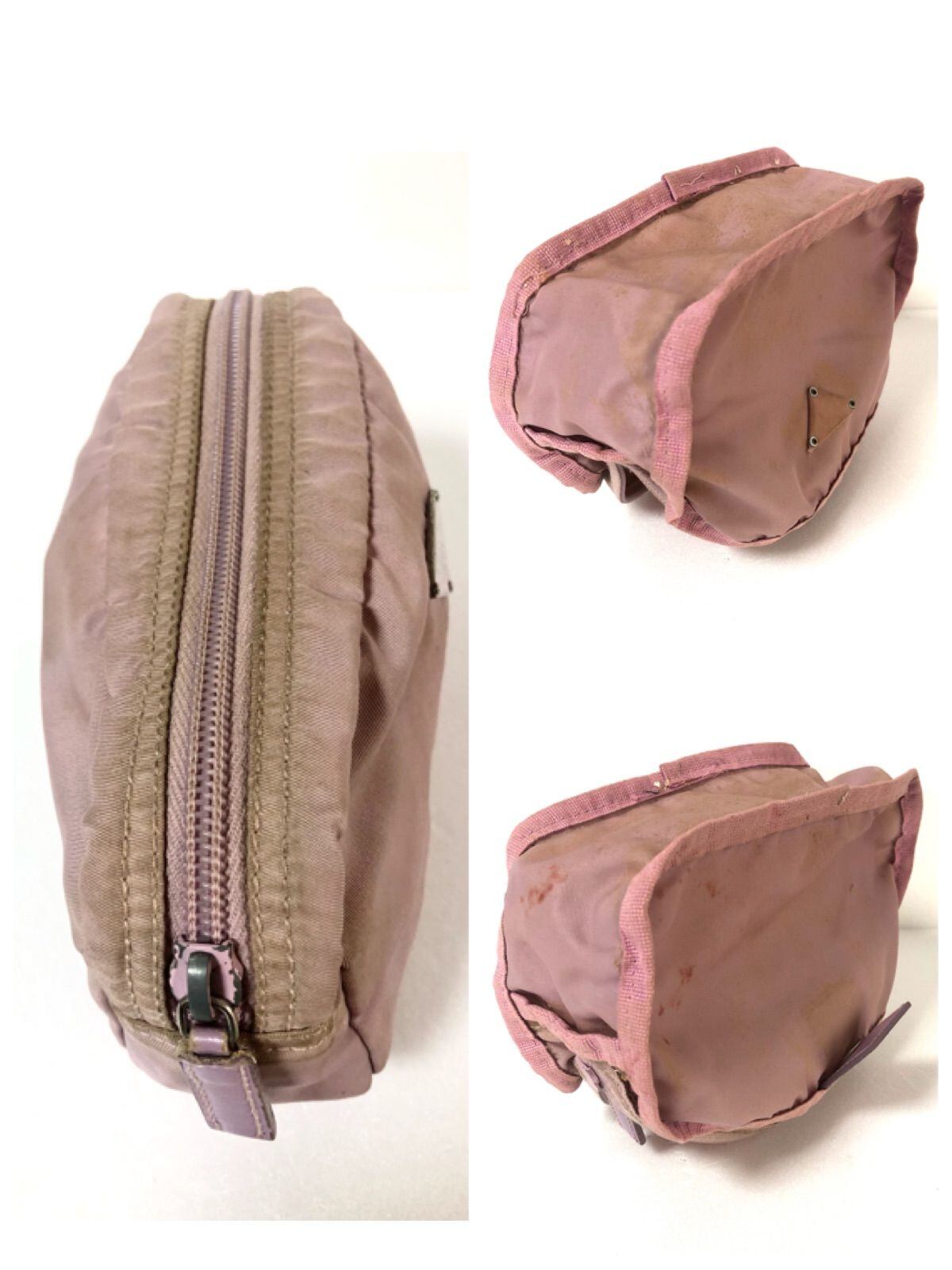 PRADA プラダ テスートナイロン「ポコノ」 ミニポーチ 三角プレート ピンク系 イタリア製 白タグあり ギャランティーカードあり レディース