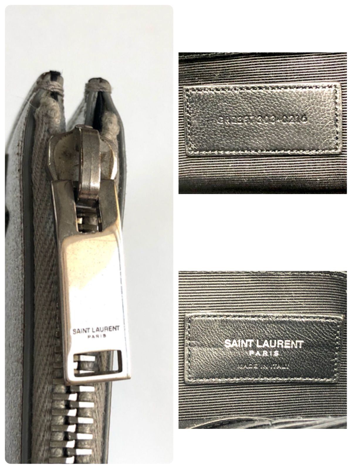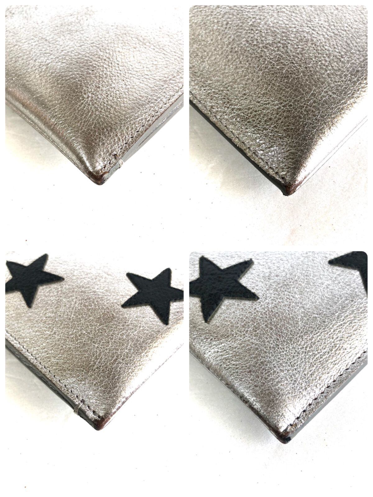 SAINT LAURENT サンローラン スターパッチ クラッチバック レザー 本革 シルバー×ブラックスター 紙カードあり イタリア製 刻印あり レディース