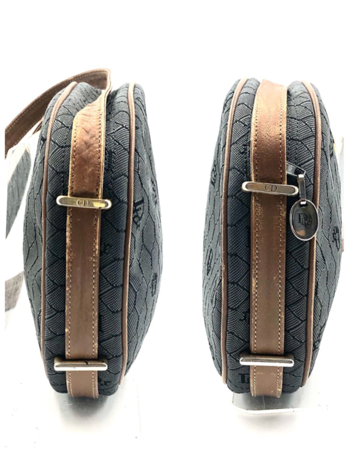 ■良品■Christian Dior クリスチャンディオール ハニカム柄 ショルダーバッグ ポシェット キャンバス×レザー 斜めがけ クロスボディ グレー×ブラウン ロゴ金具 レディース