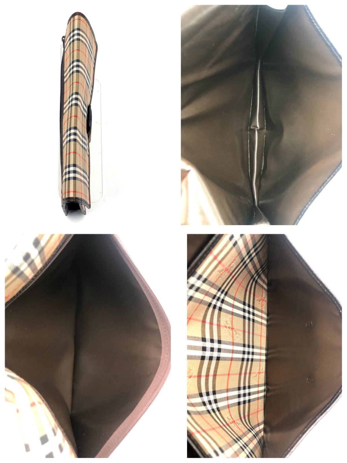 ■極美品■Burberrys バーバリー ノバチェック+シャドーホース クラッチバッグ ベージュ×ブラウン キャンバス×レザー ホースマーク