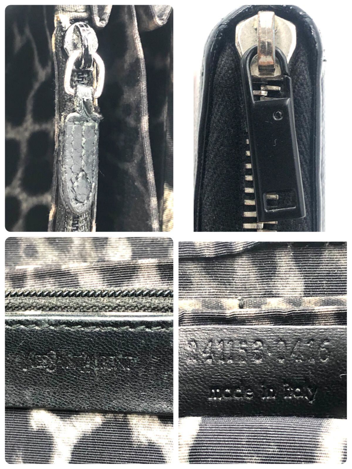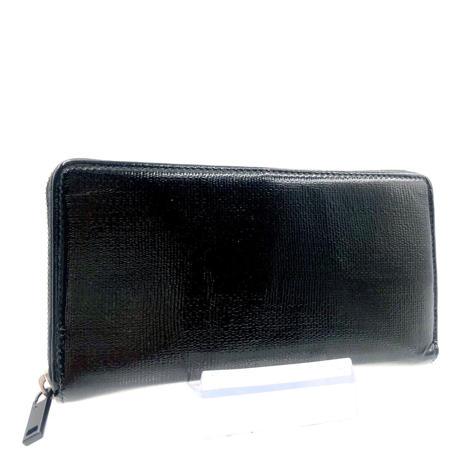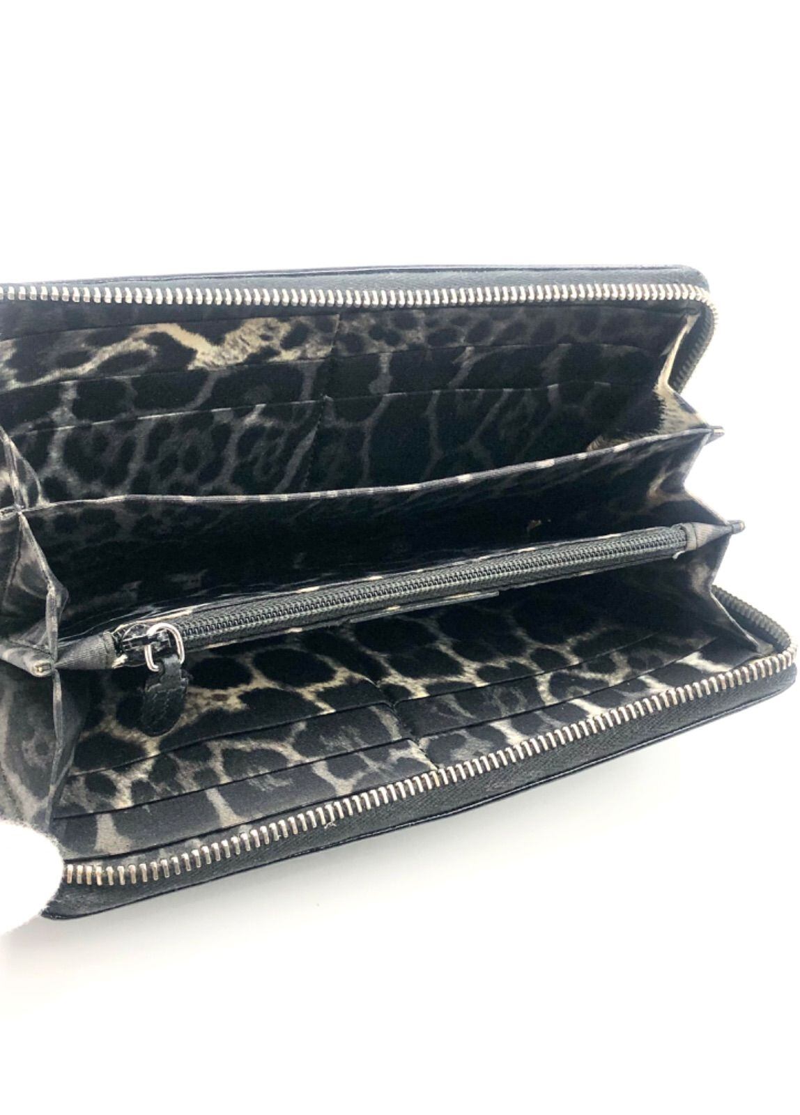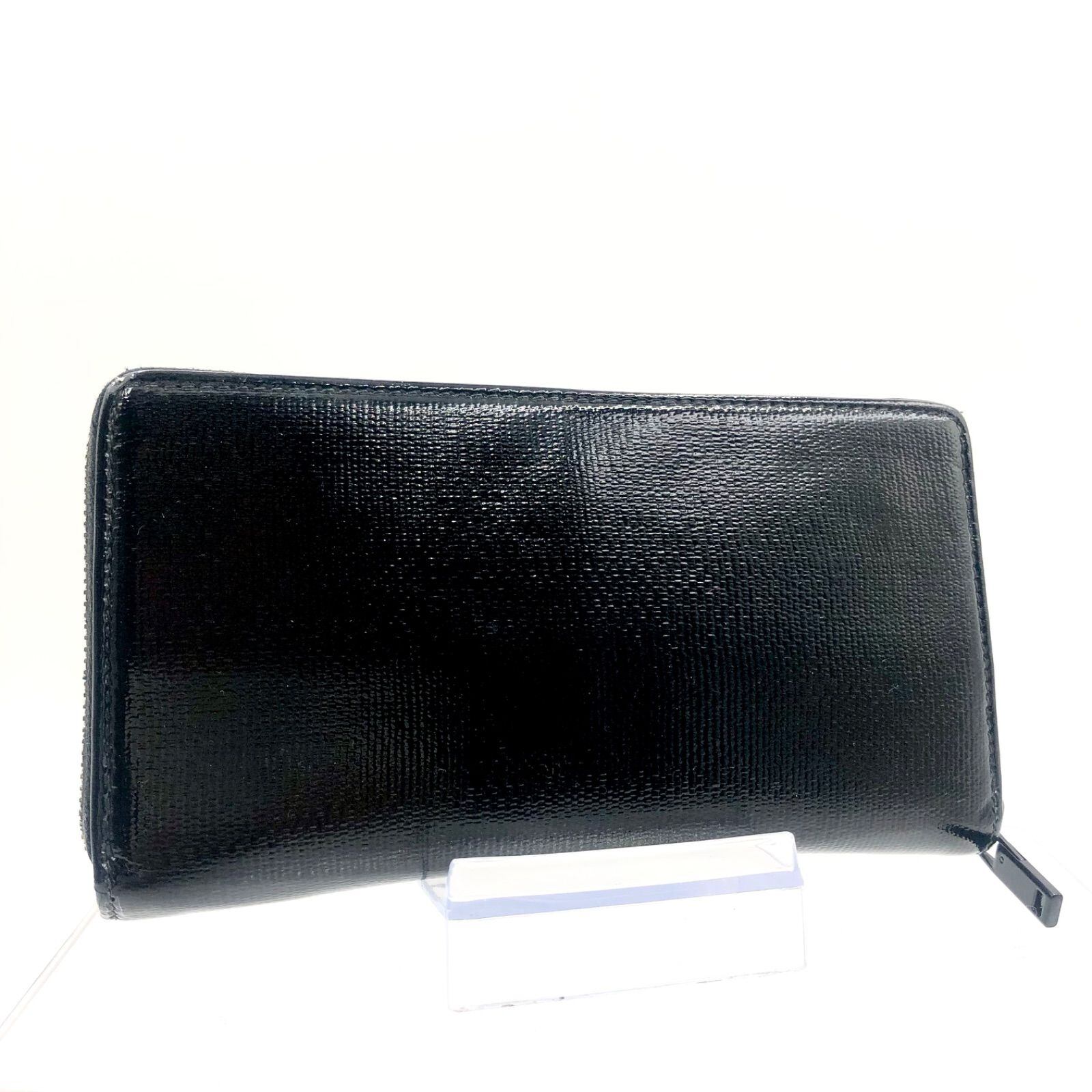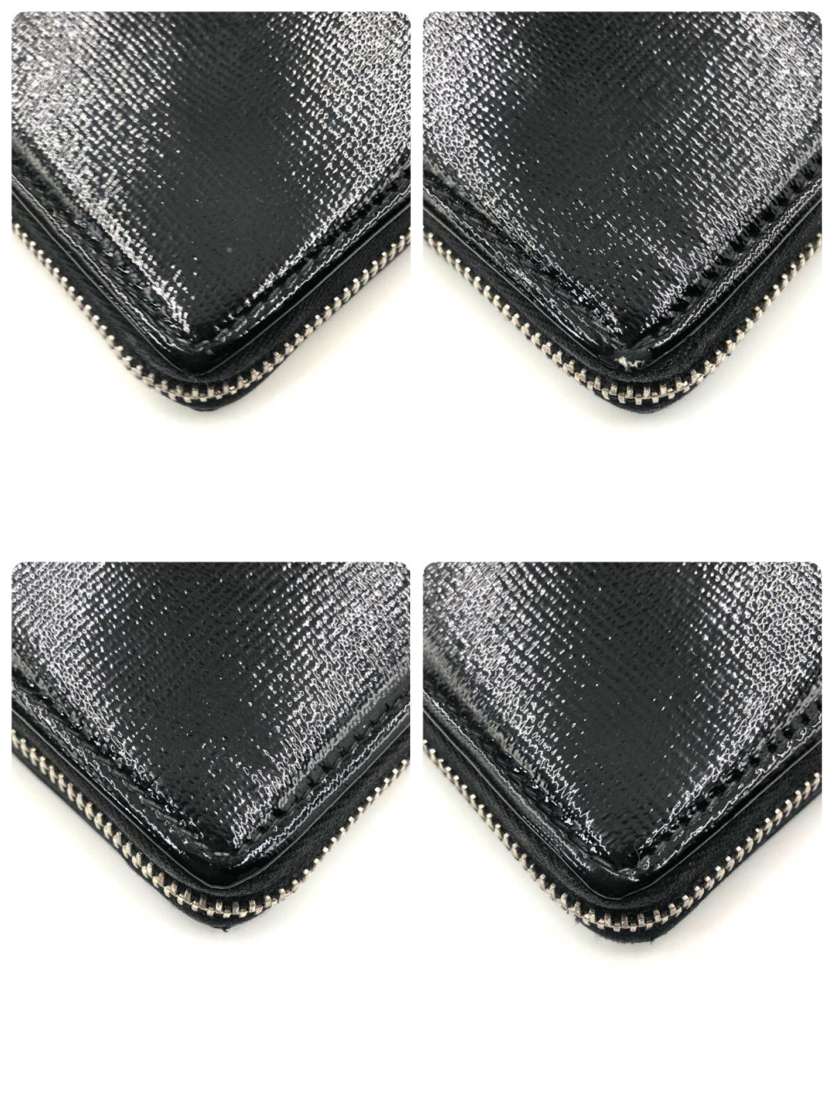 ■外観美品■Yves saint Laurent イヴサンローラン ラウンドファスナー 長財布 パテントレザー エナメル ブラック×内側アニマル柄 イタリア製 刻印あり