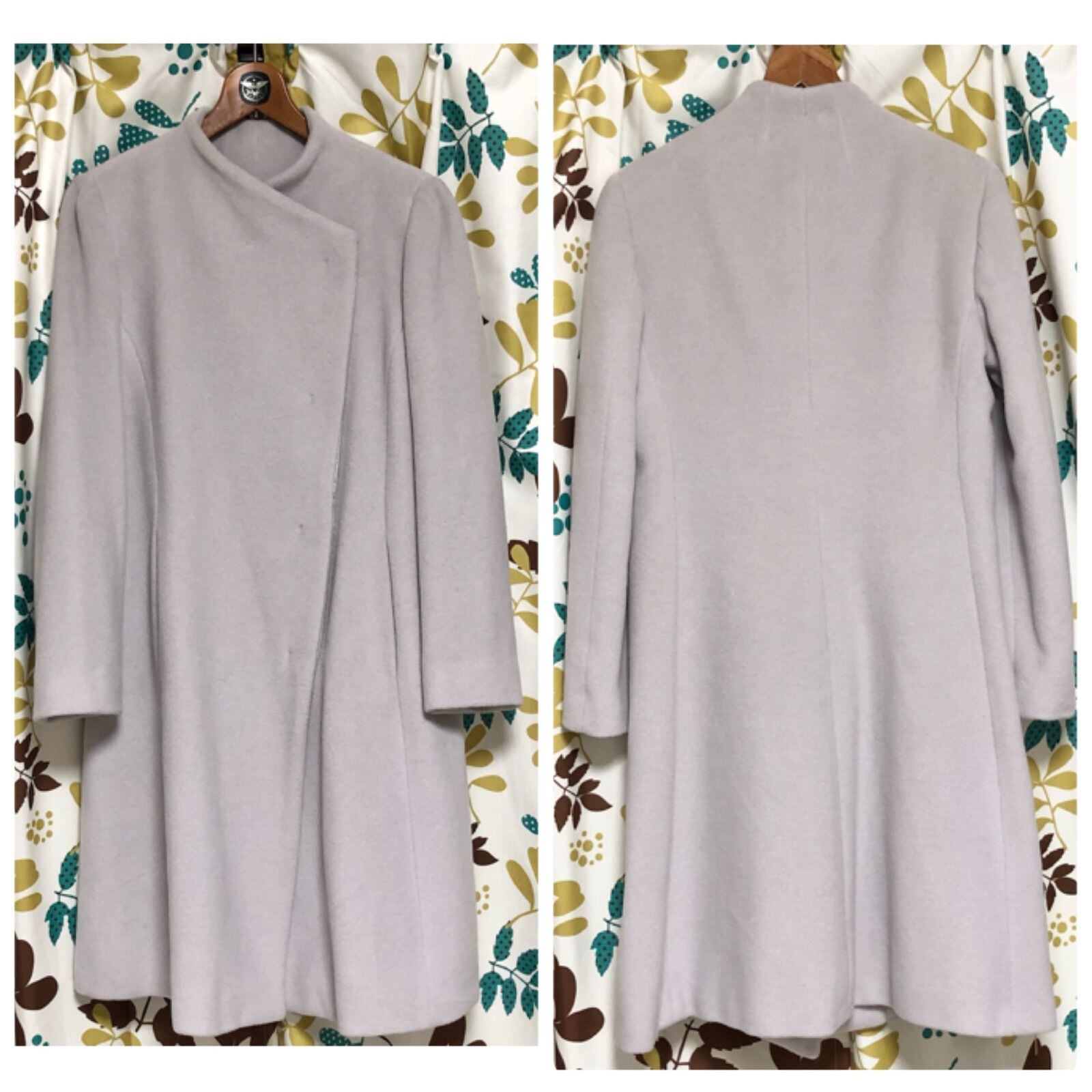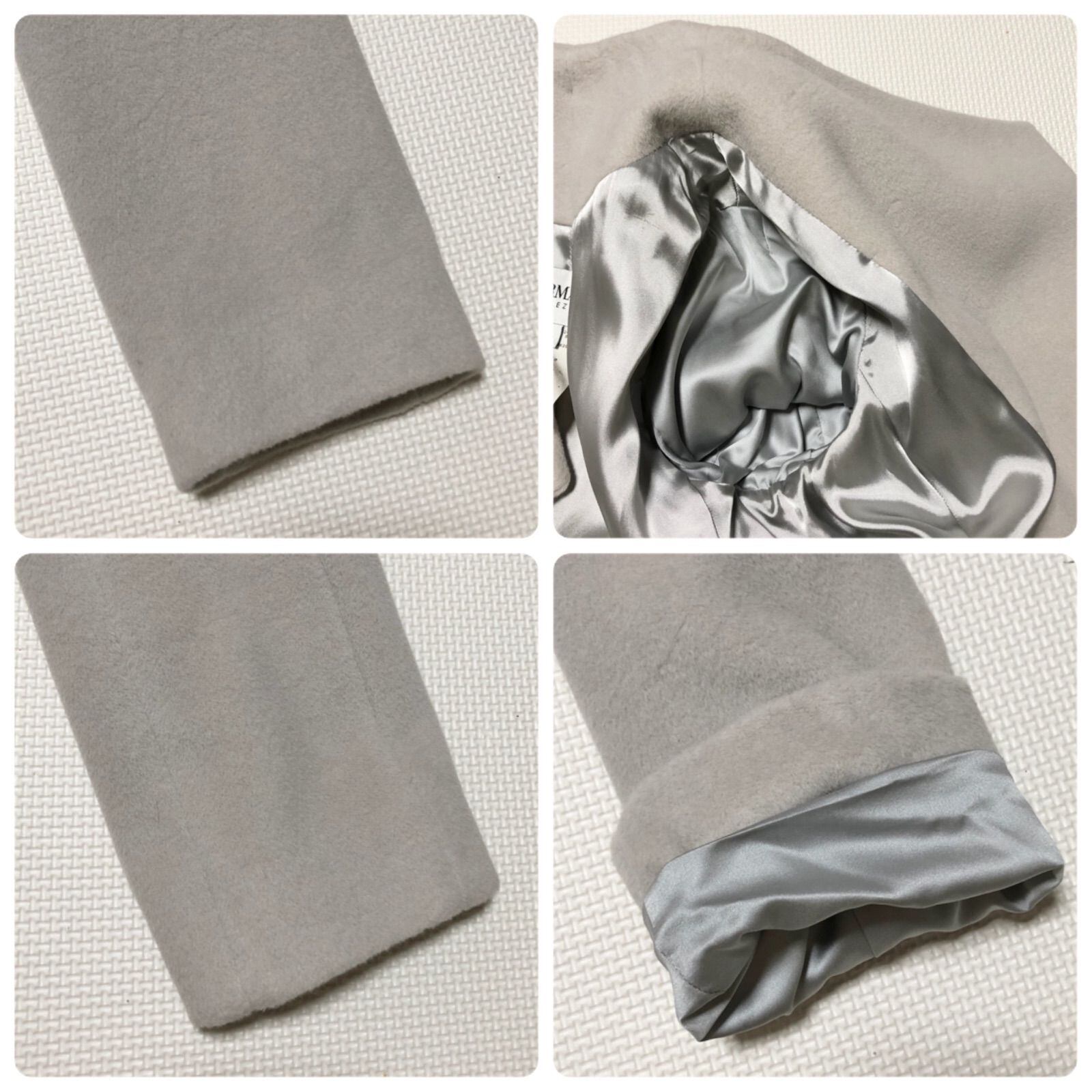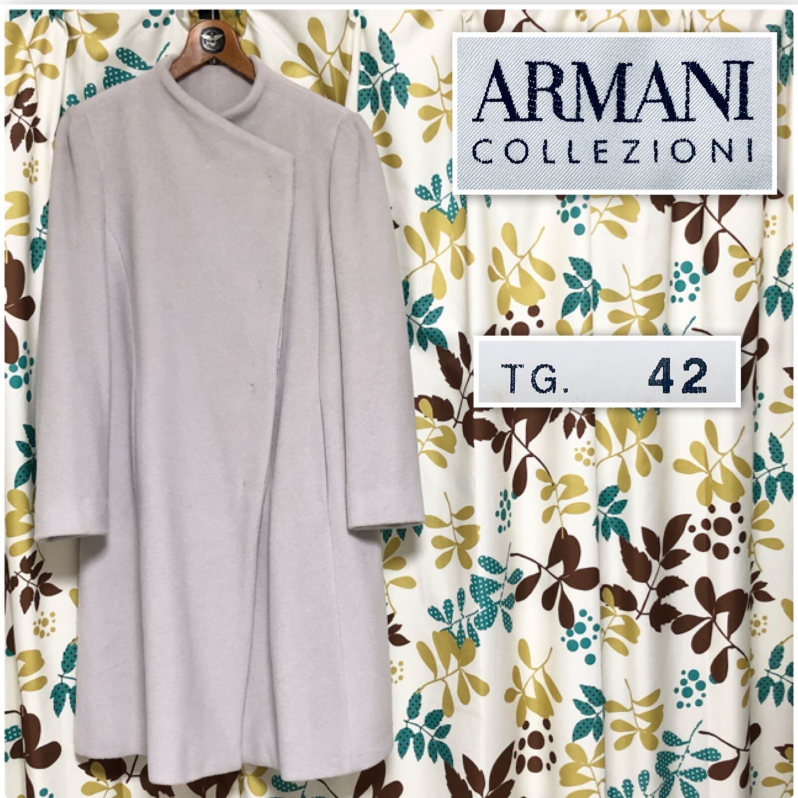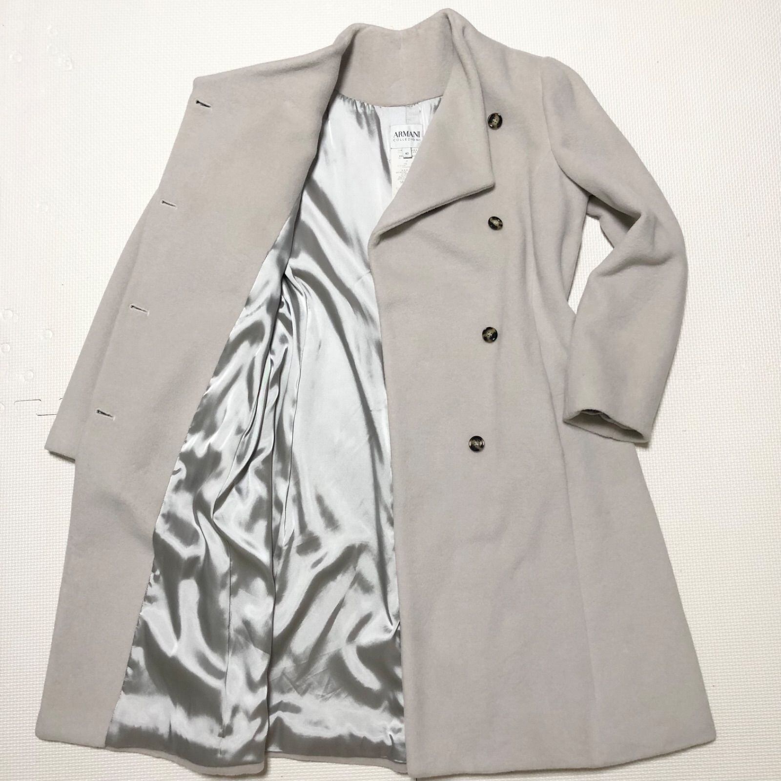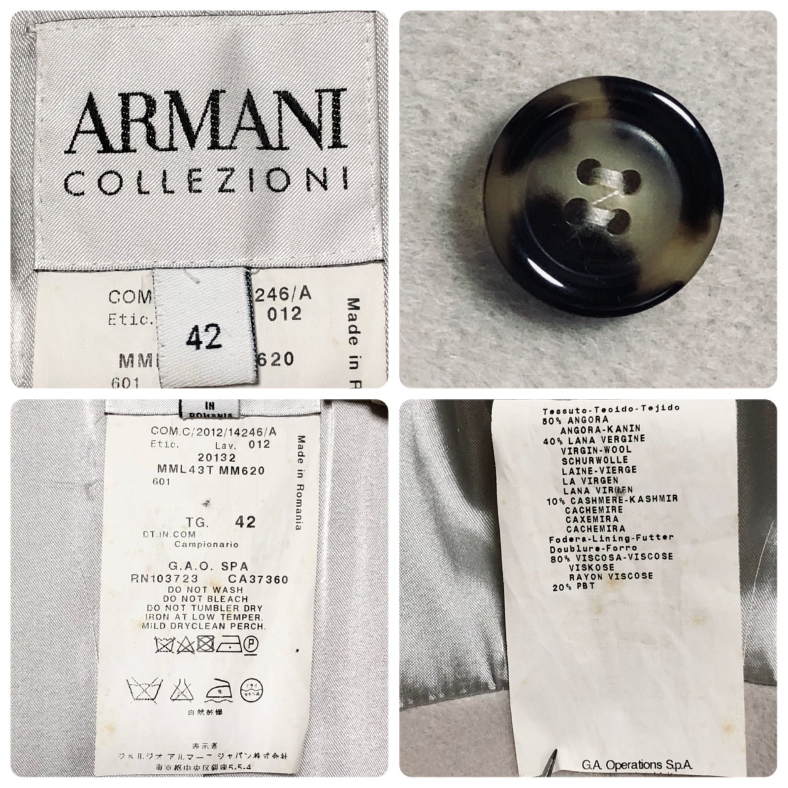 ■極上美品■希少カシミヤ混アンゴラ&ウール■ARMANI COLLEZIONI アルマーニ コレツィオーニ ロングコート size42(L) ルーマニア製 ライトグレー 比翼仕立て エレガント襟元デザイン レディース
