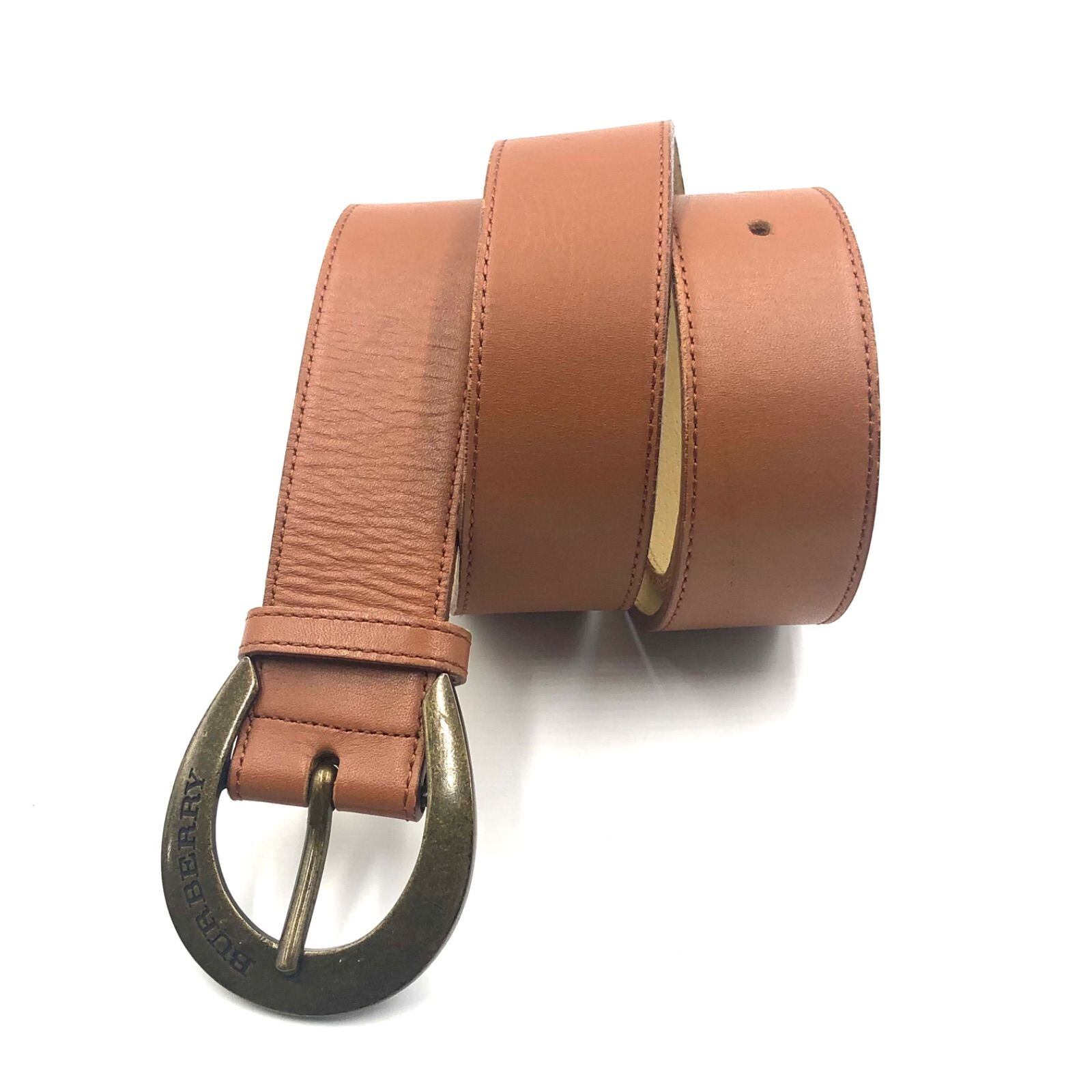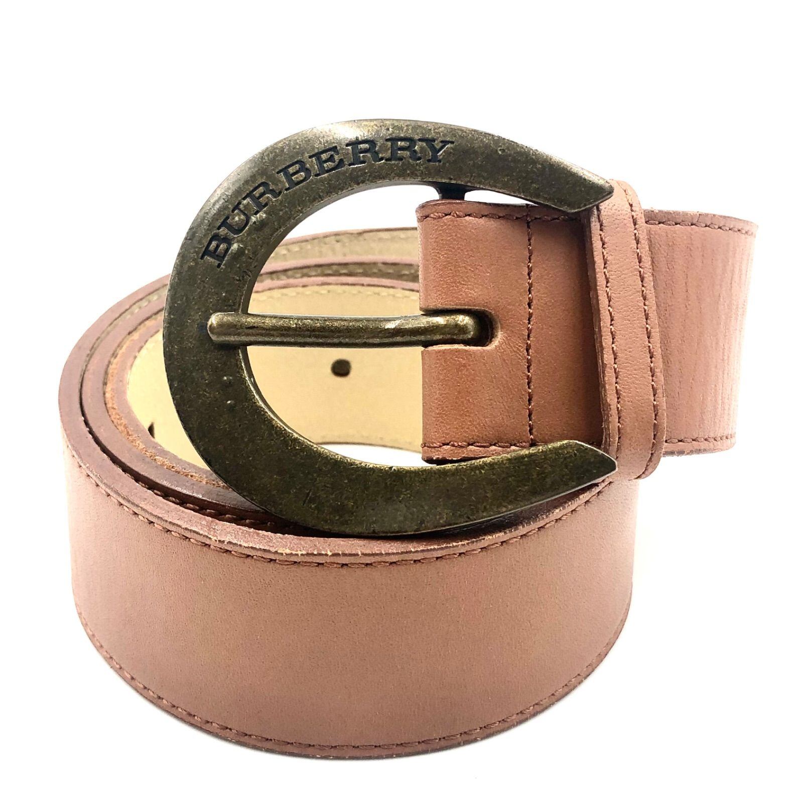 ■美品■BURBERRY バーバリー レザーベルト 馬蹄型ロゴバックル 本革 ブラウン ウエスト最大84cm メンズ