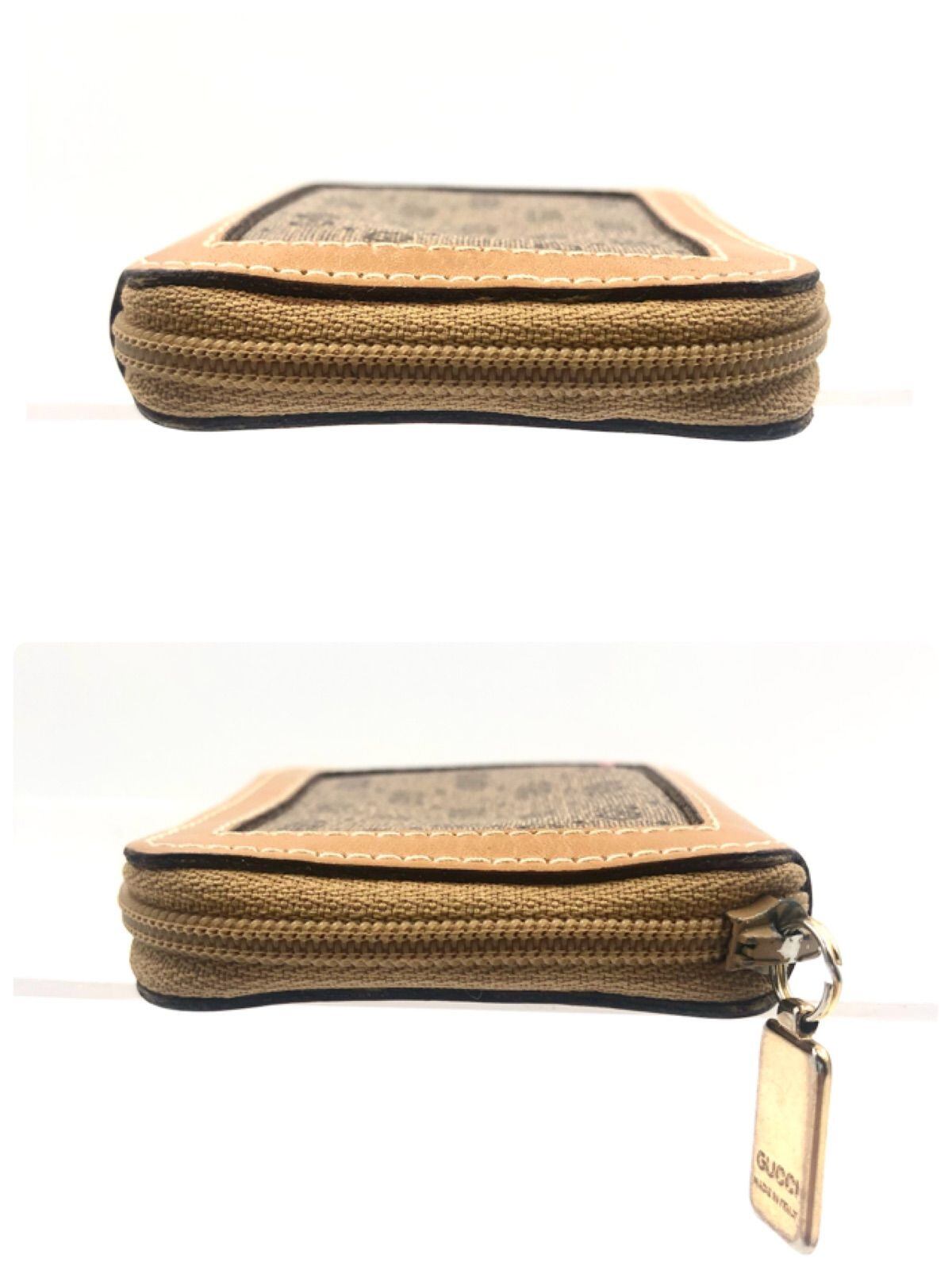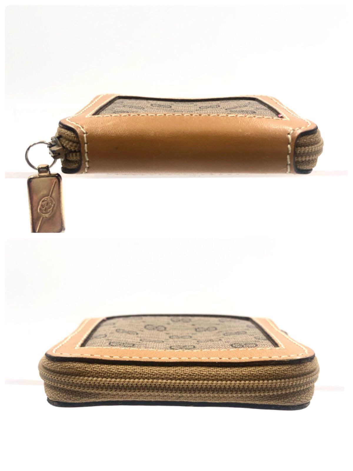 ■美品■希少デザイン■GUCCI グッチ マイクロGG ジップアラウンド コインケース 小銭入れ コーティングキャンバス×レザー ブラウン GG柄 ロゴプレートチャーム イタリア製 刻印あり