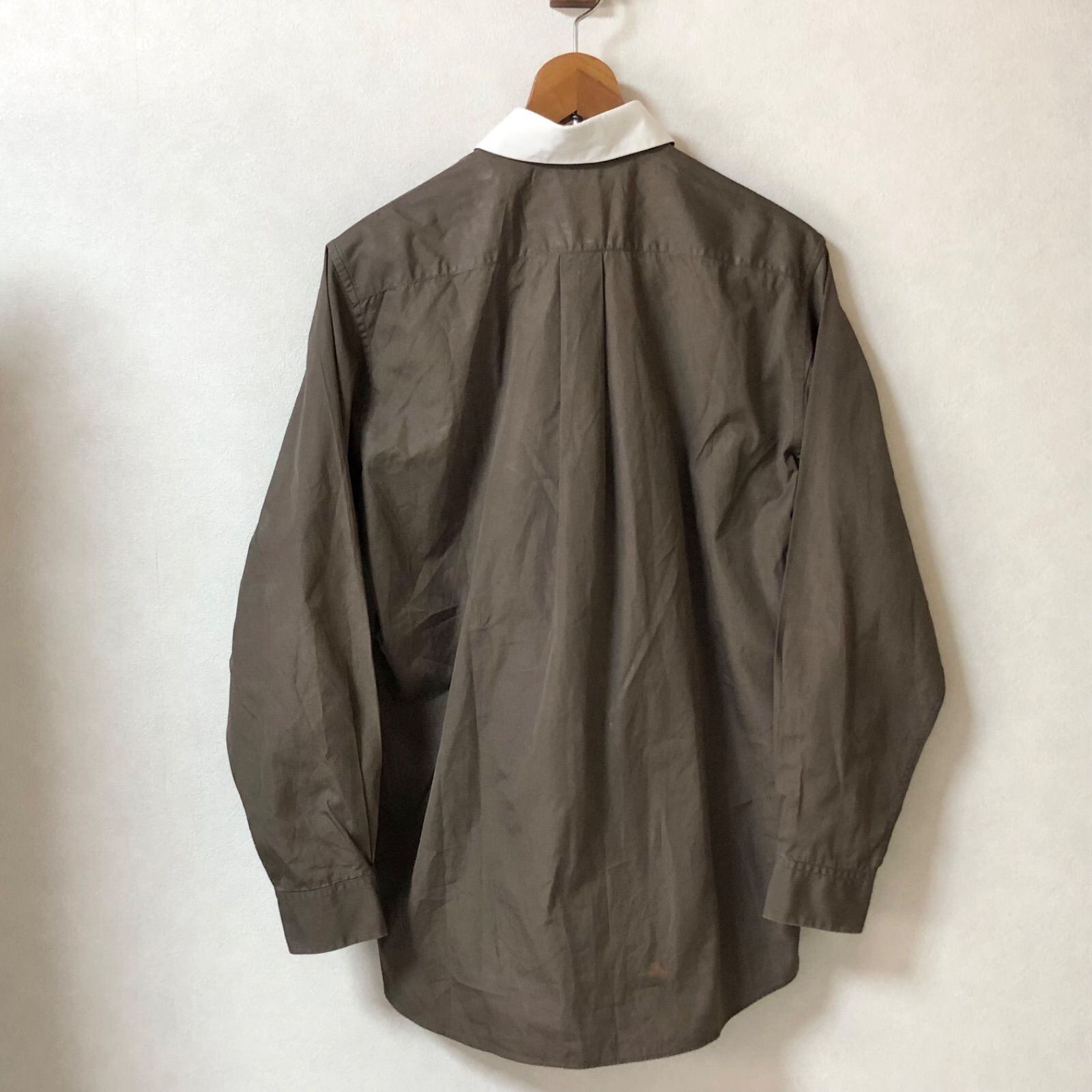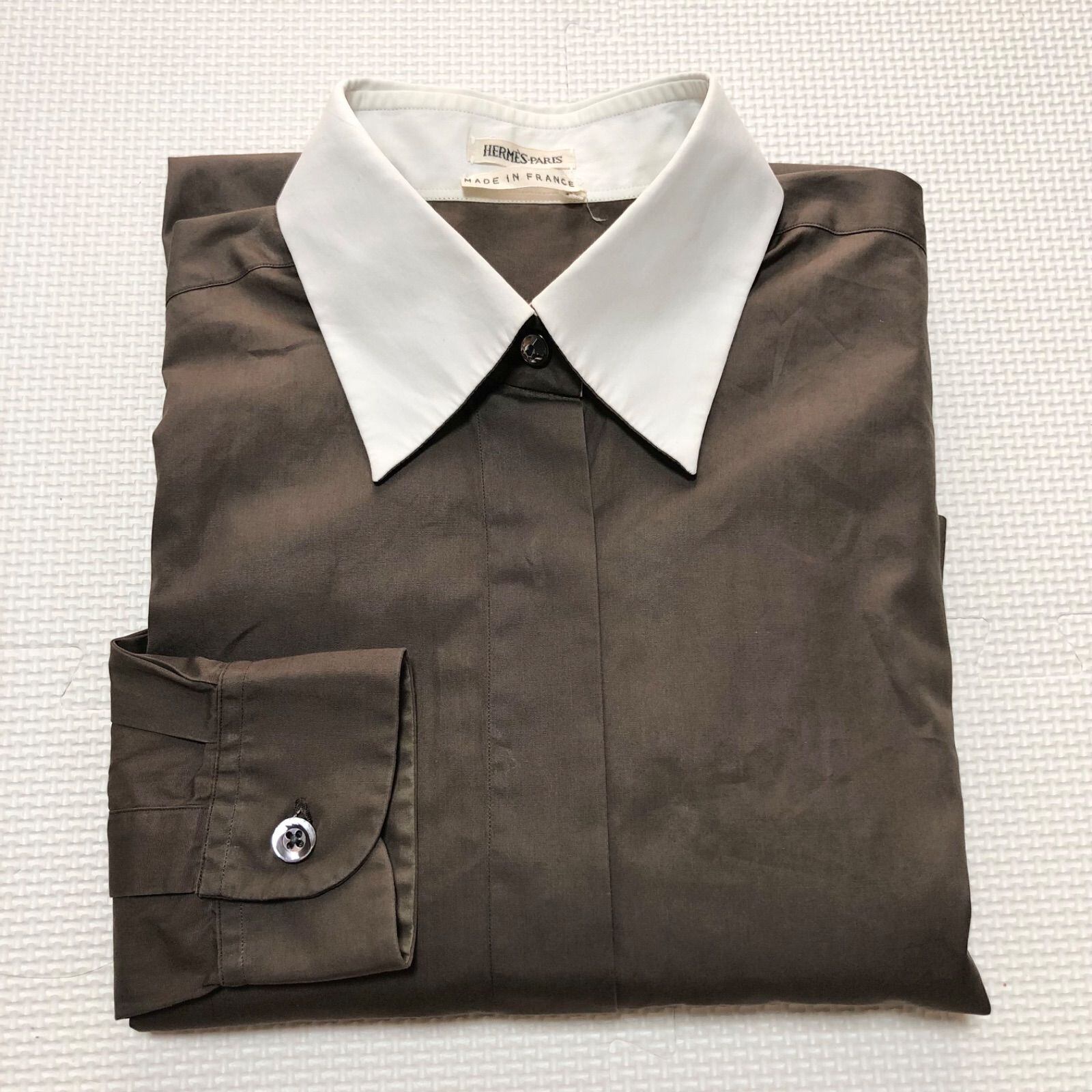 ■希少マルジェラ期■HERMES エルメス コットンシャツ ブラウス 長袖 size40(L) 大きめ フランス製 コットン100% ブラウン系カーキ レディース