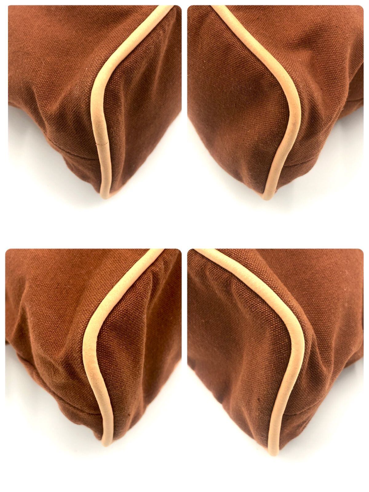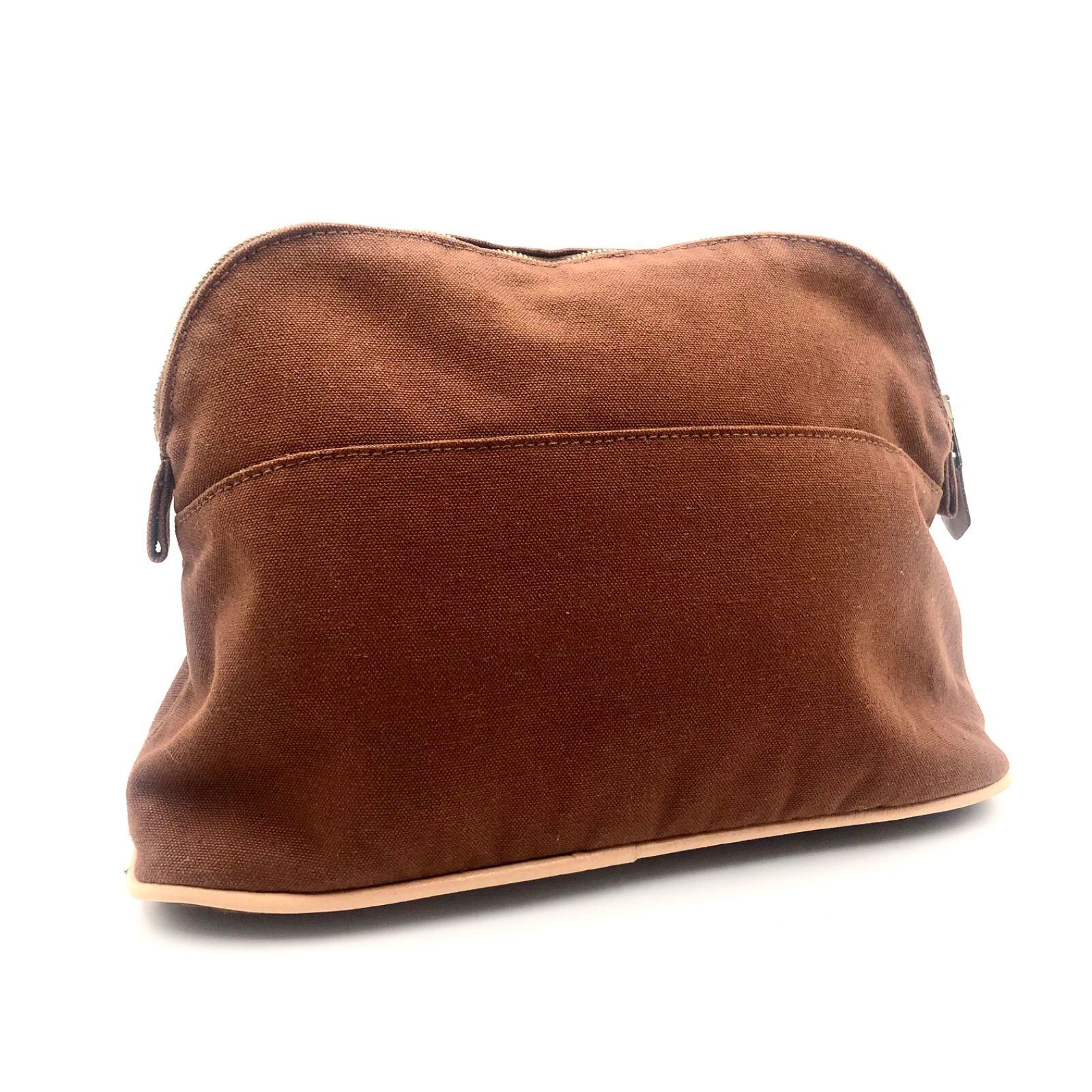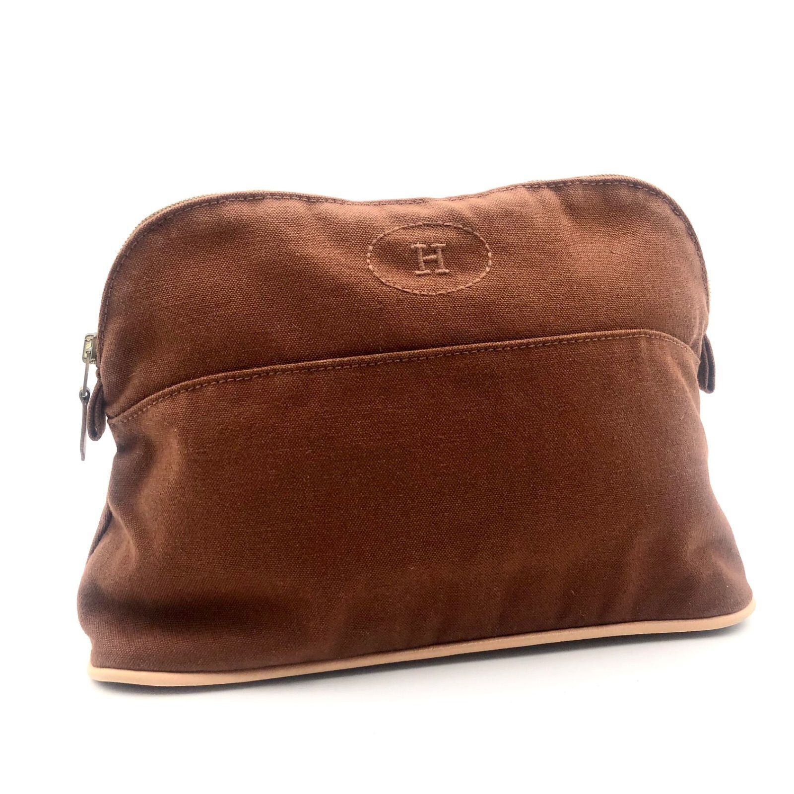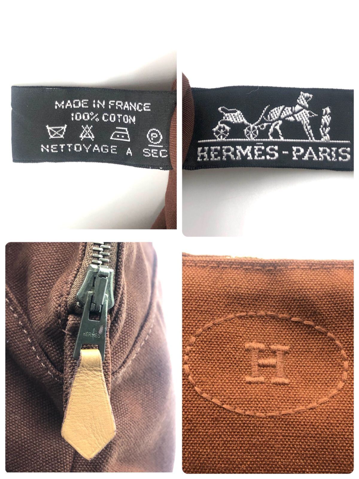 ■極美品■HERMES エルメス ボリードポーチMM キャンバス ブラウン 布タグあり フランス製 コットンキャンバス Hロゴ刺しゅう レディース