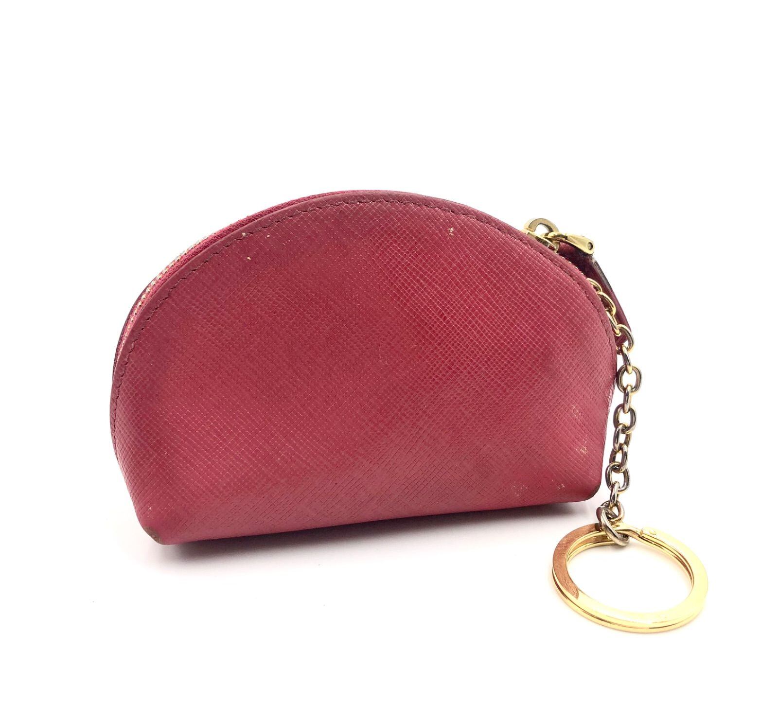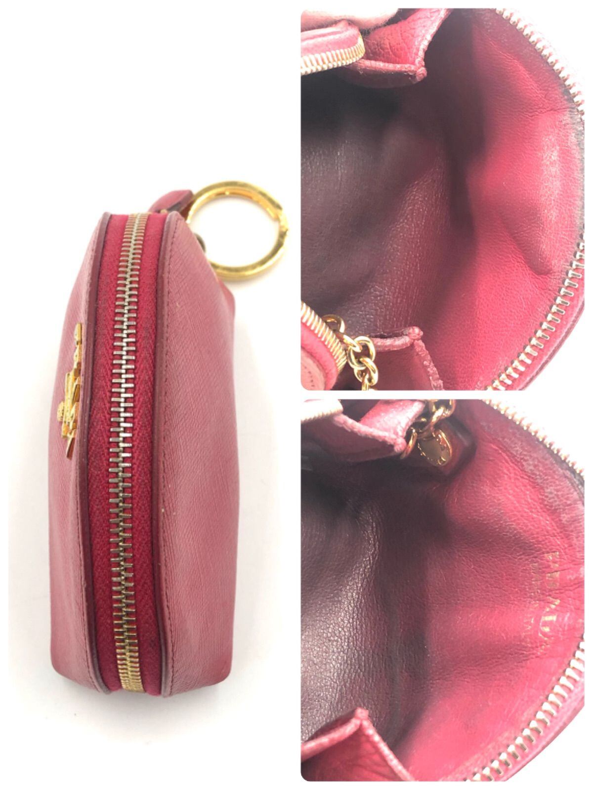 PRADA プラダ サフィアーノレザー キーリング付きミニポーチ コインケース ロゴ金具 ピンク ゴールド金具 イタリア製 白タグあり レディース