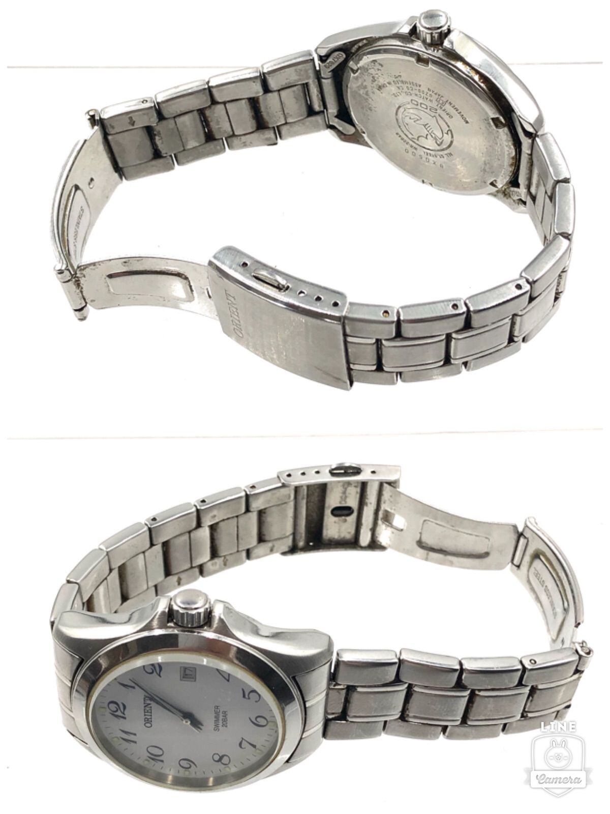 ■稼働品■ORIENT オリエント SWIMMER スイマー 20BAR クォーツ式アナログ腕時計 デイト ステンレススチール シルバー金具 腕周り17cm メンズ