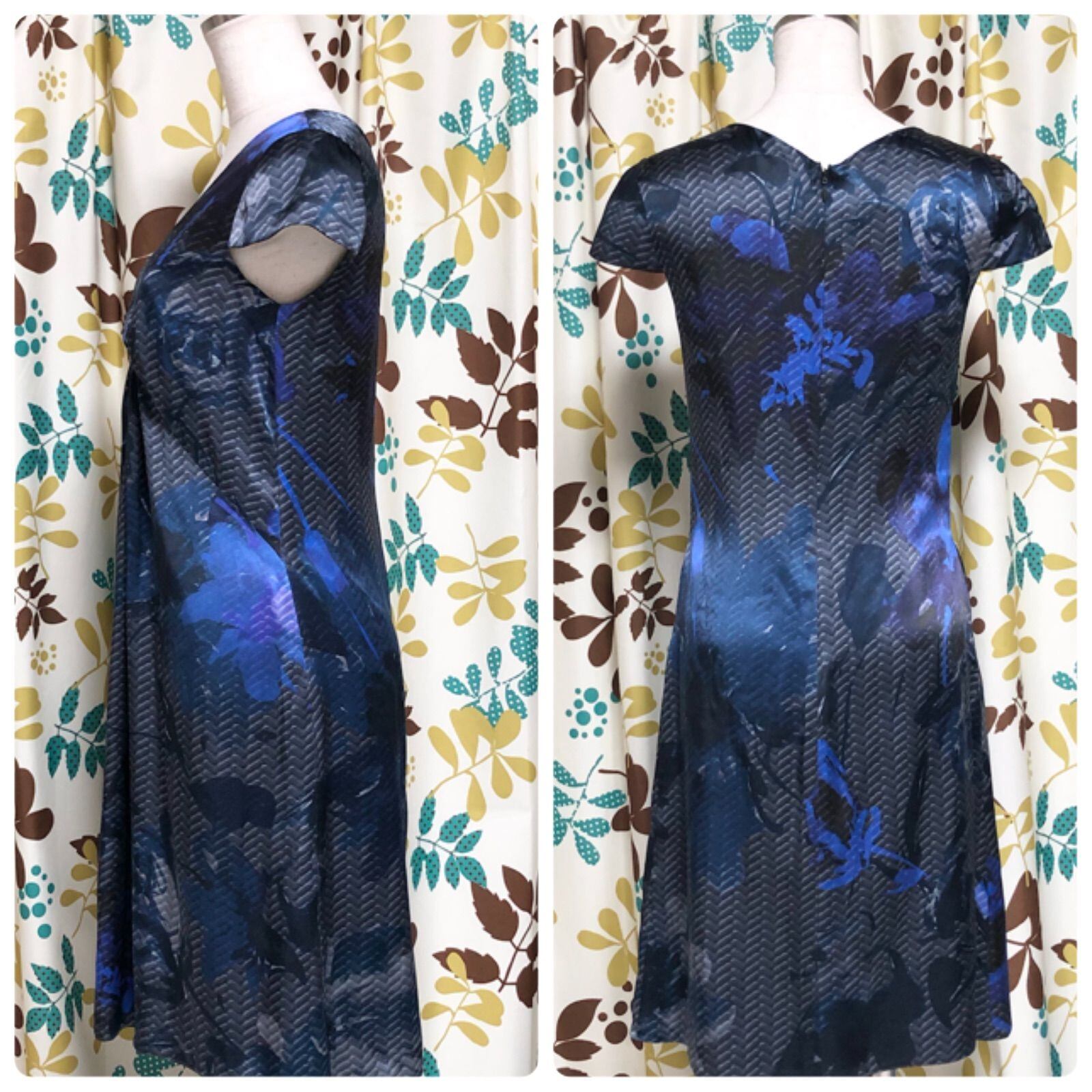 ■未使用タグ付き■ARMANI COLLEZIONI アルマーニ コレツィオーニ キャップスリーブ シルクワンピース Aライン size38(M) イタリア製 シルク100% 裏地あり グレー×ブルー×パープル レディース