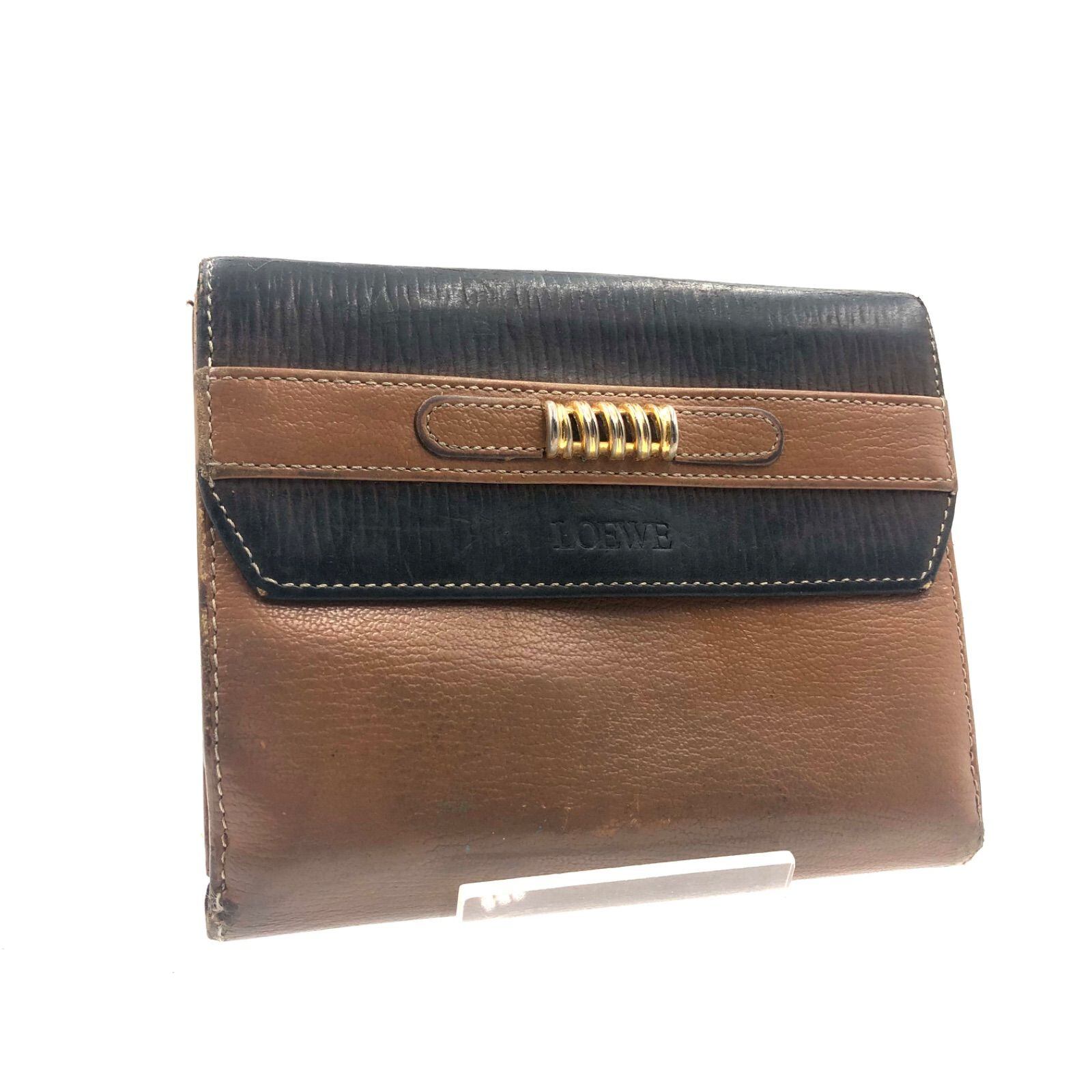 ■希少■LOEWE ロエベ ベラスケス 二つ折り財布 レザー 本革 スペイン製 ブラウン系 シルバー金具