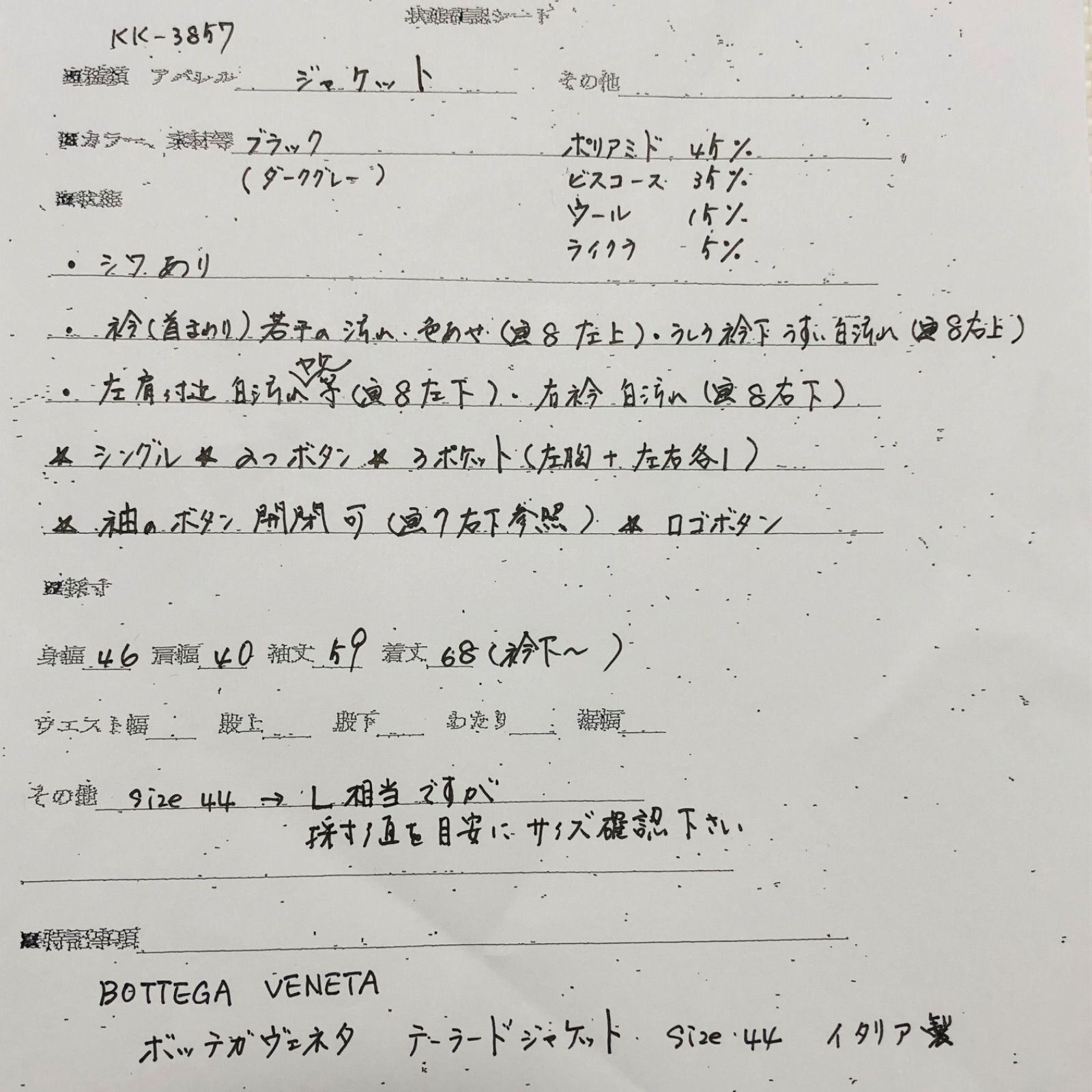 素人採寸のため誤差はご容赦ください