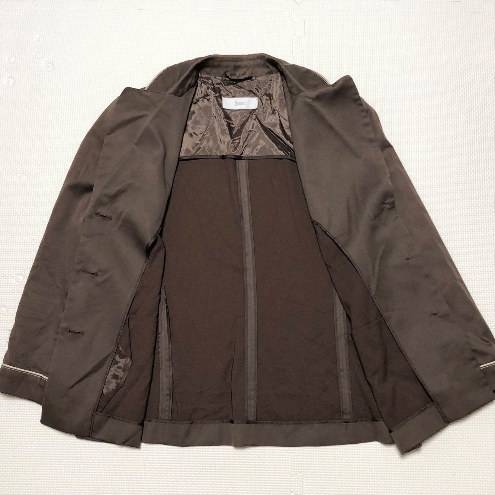■美品■HERNO ヘルノ シングルテーラードジャケット size46(L~ XL) イタリア製 ブラウン 背抜き レディース