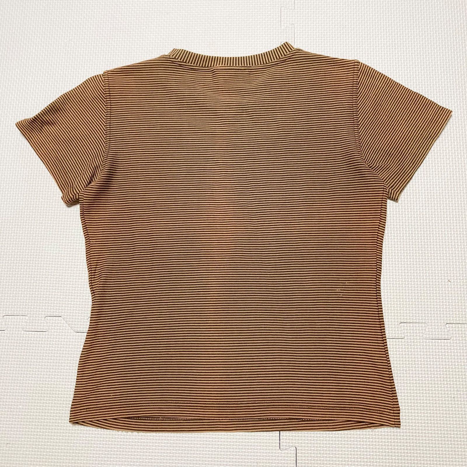 FENDI フェンディ 半袖Tシャツ ボーダー size48(L) イタリア製 Vネック ポリアミド ブラウン系 レディース