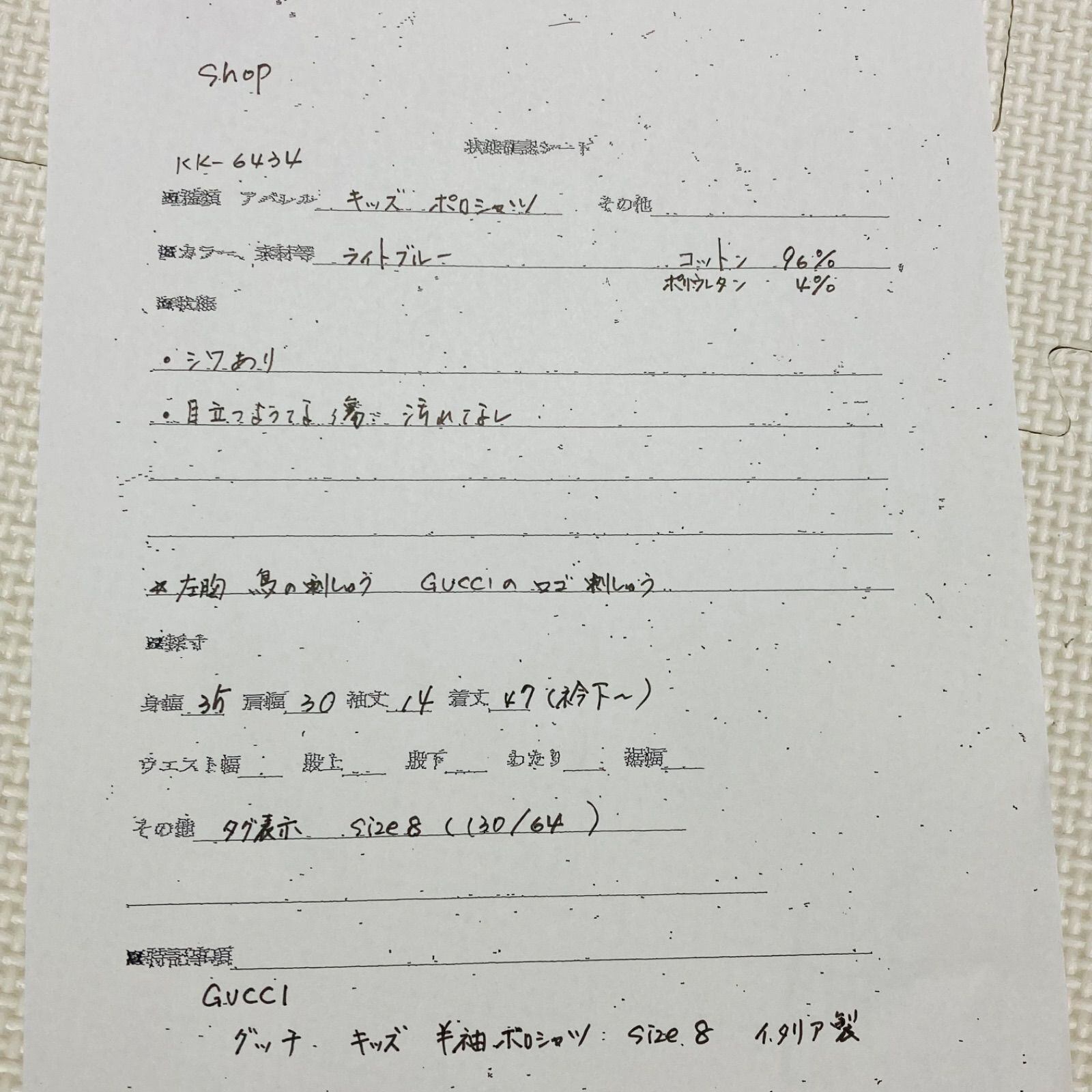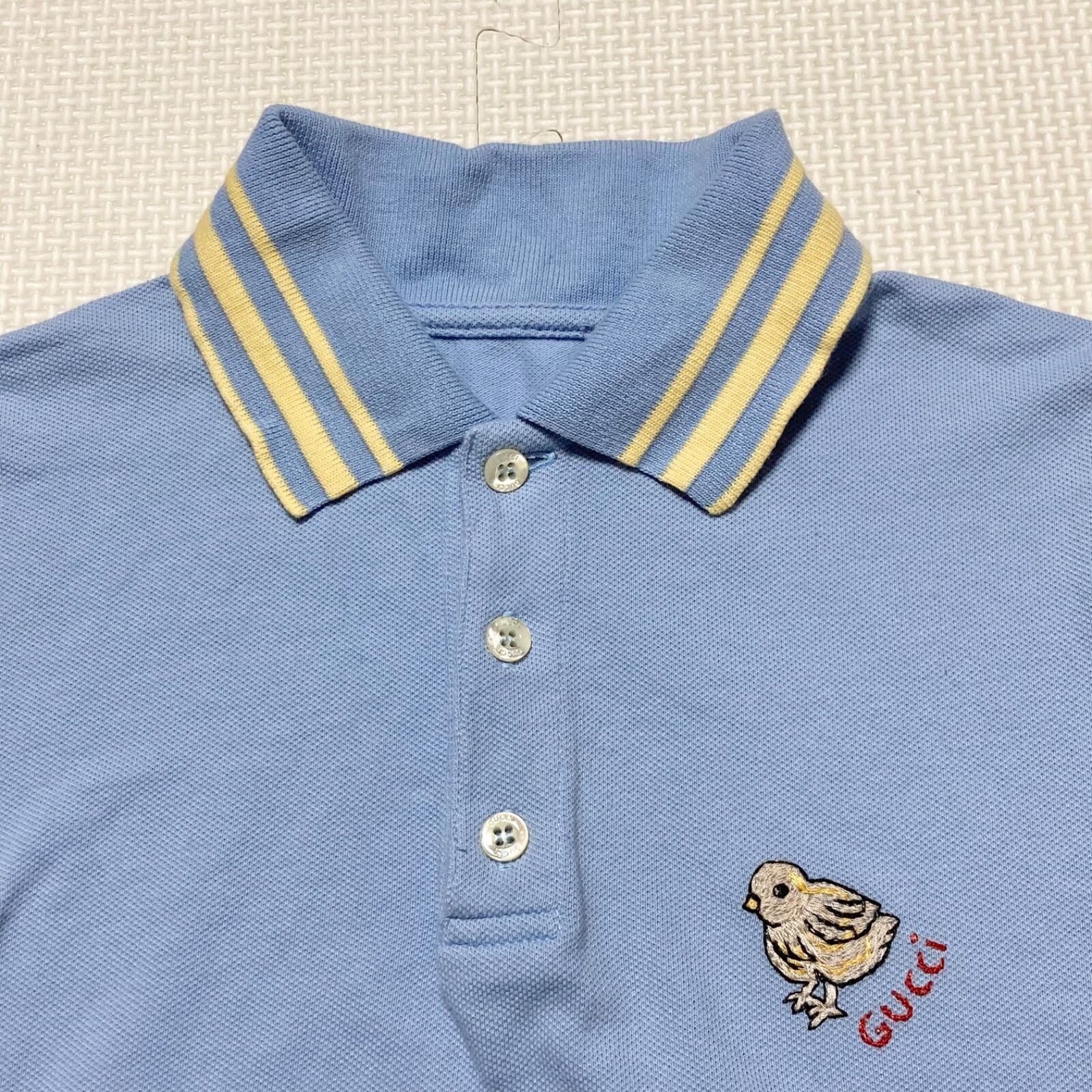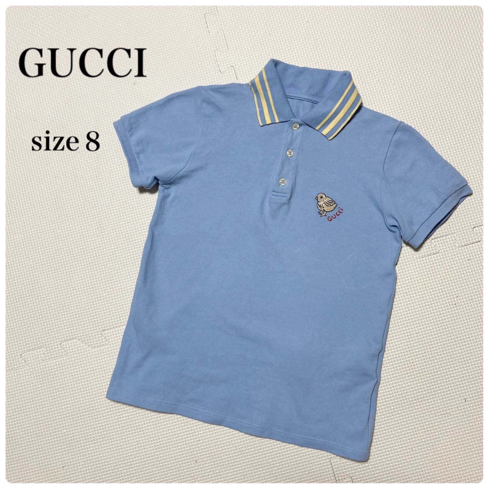 ■美品■GUCCI グッチ キッズ 半袖ポロシャツ ひよこ刺しゅう size8(130/64) イタリア製 ライトブルー 襟ボーダー