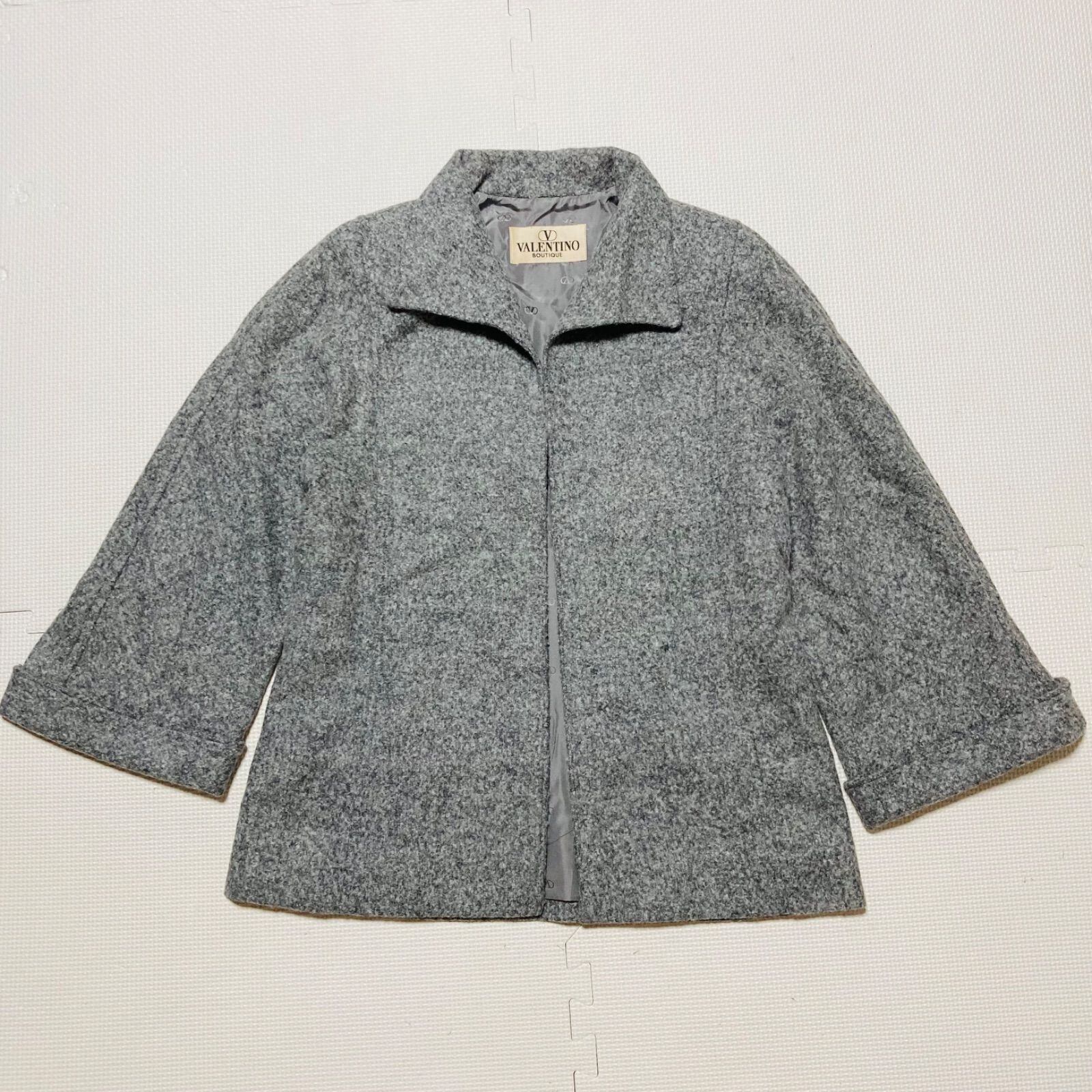 ■美品■稀少アルパカ95%×裏地シルク100%■VALENTINO BOUTIQUE ヴァレンティノブティック トッパージャケット size8(S ) グレー 裏地ロゴ総柄 レディース