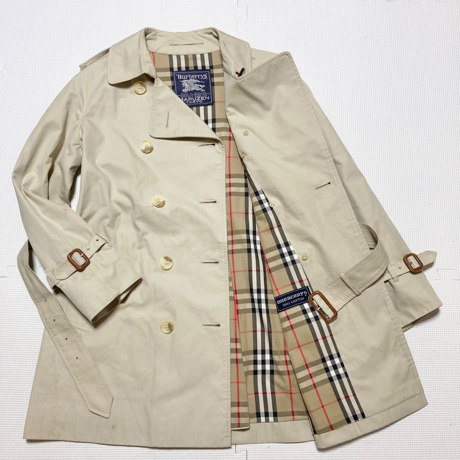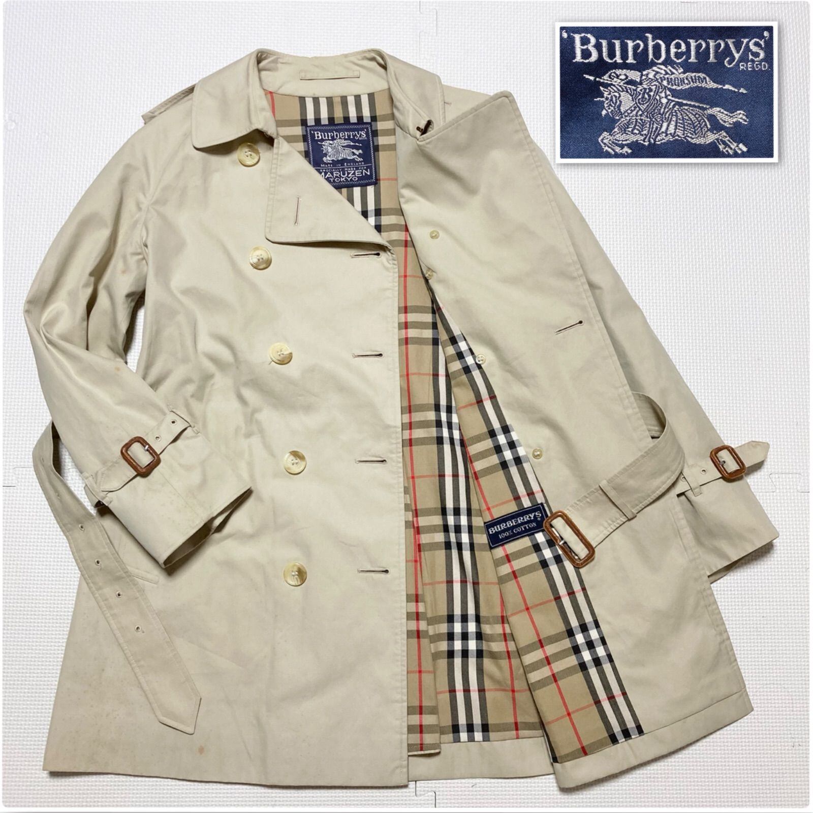 Burberrys バーバリー ダブルトレンチコート ショート ベージュ×裏地総ノバチェック コットン100% ベルト ベルテッド 三陽商会製 丸善東京 レディース 秋冬