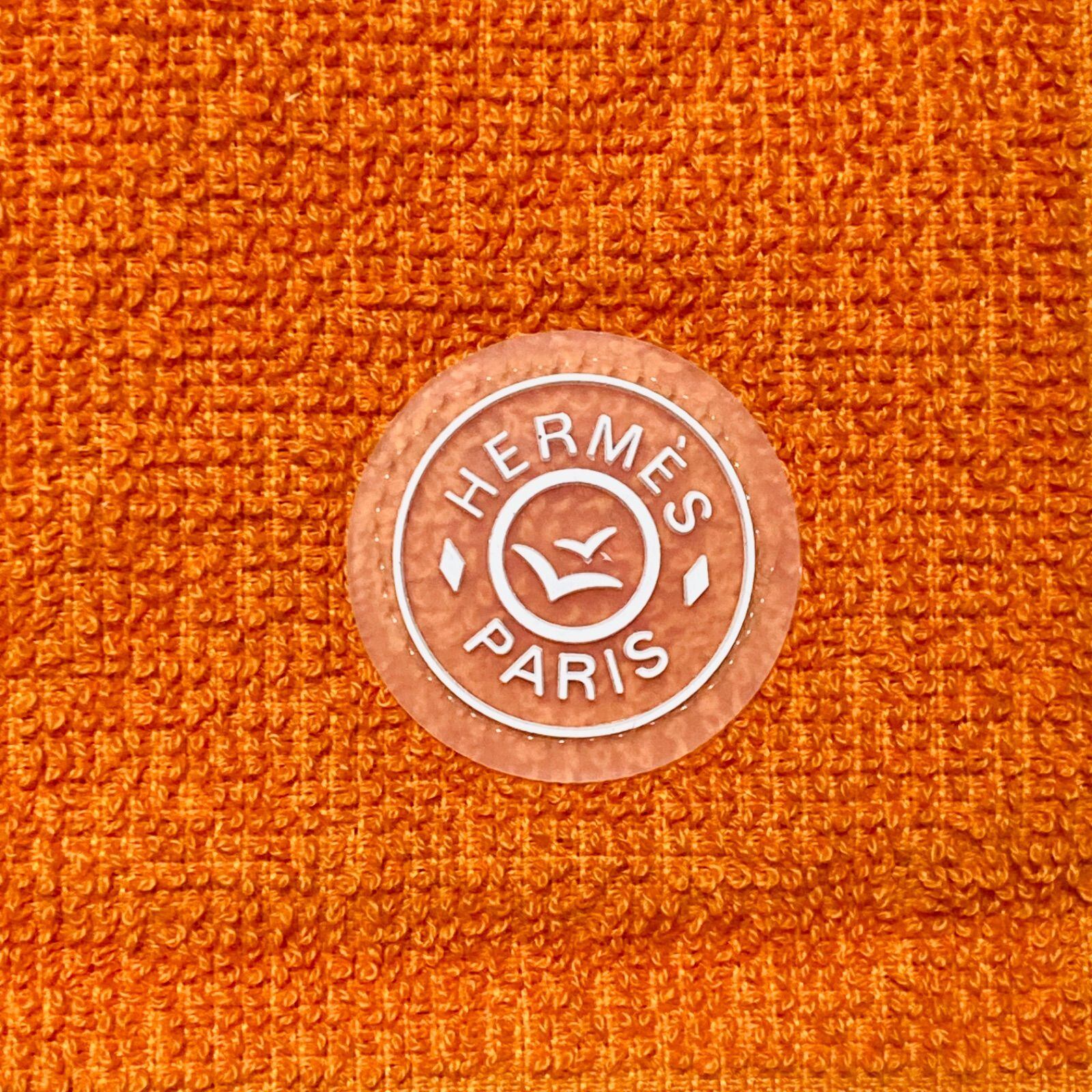 ■未使用同然■HERMES エルメス Bain / Beach Collection バン/ビーチコレクション タオル フリンジ ベルギー製 オレンジ バンロゴ カモメロゴ コーマコットン100%