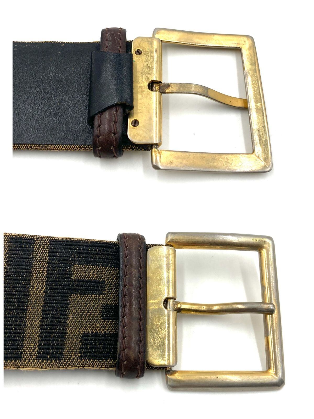 FENDI フェンディ ズッカ総柄 ベルト レザー×キャンバス ブラウン×ブラック ゴールド金具 イタリア製 85/34 ウエスト77?87cm