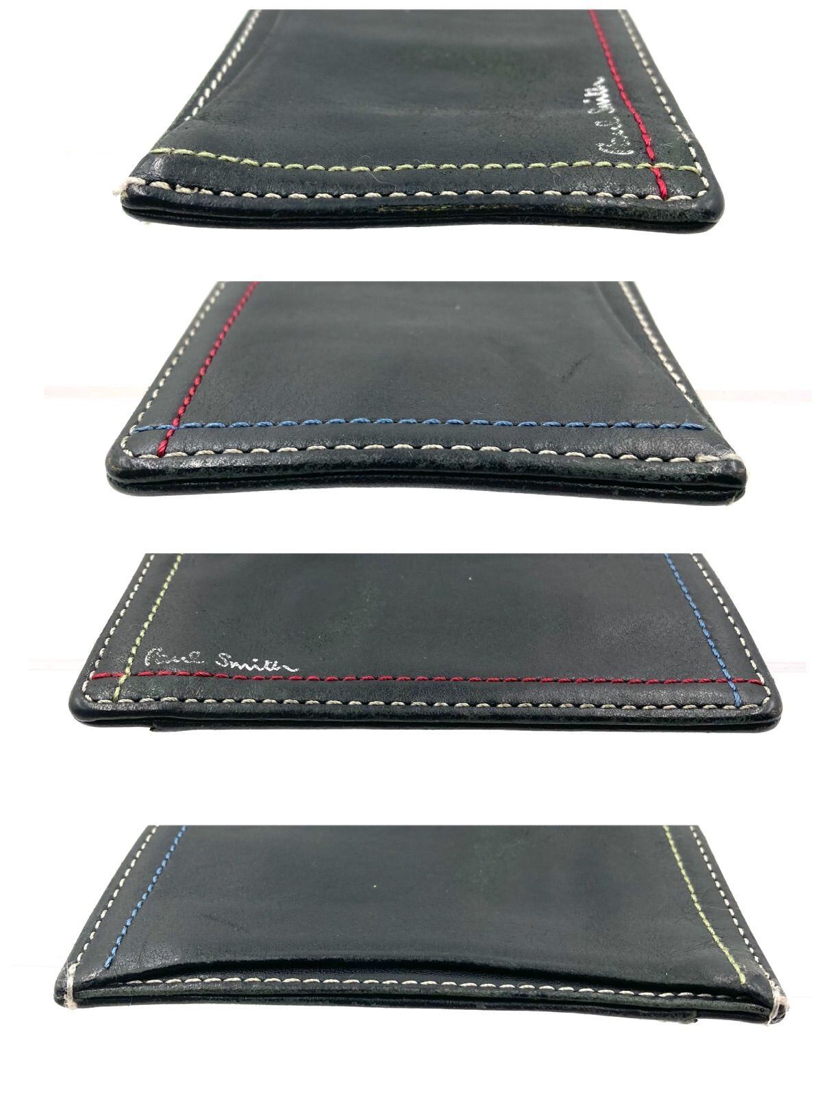 Paul Smith ポールスミス ロゴ文字 パスケース 定期入れ カードケース レザー ブラック×ライトグリーン ステッチ メンズ