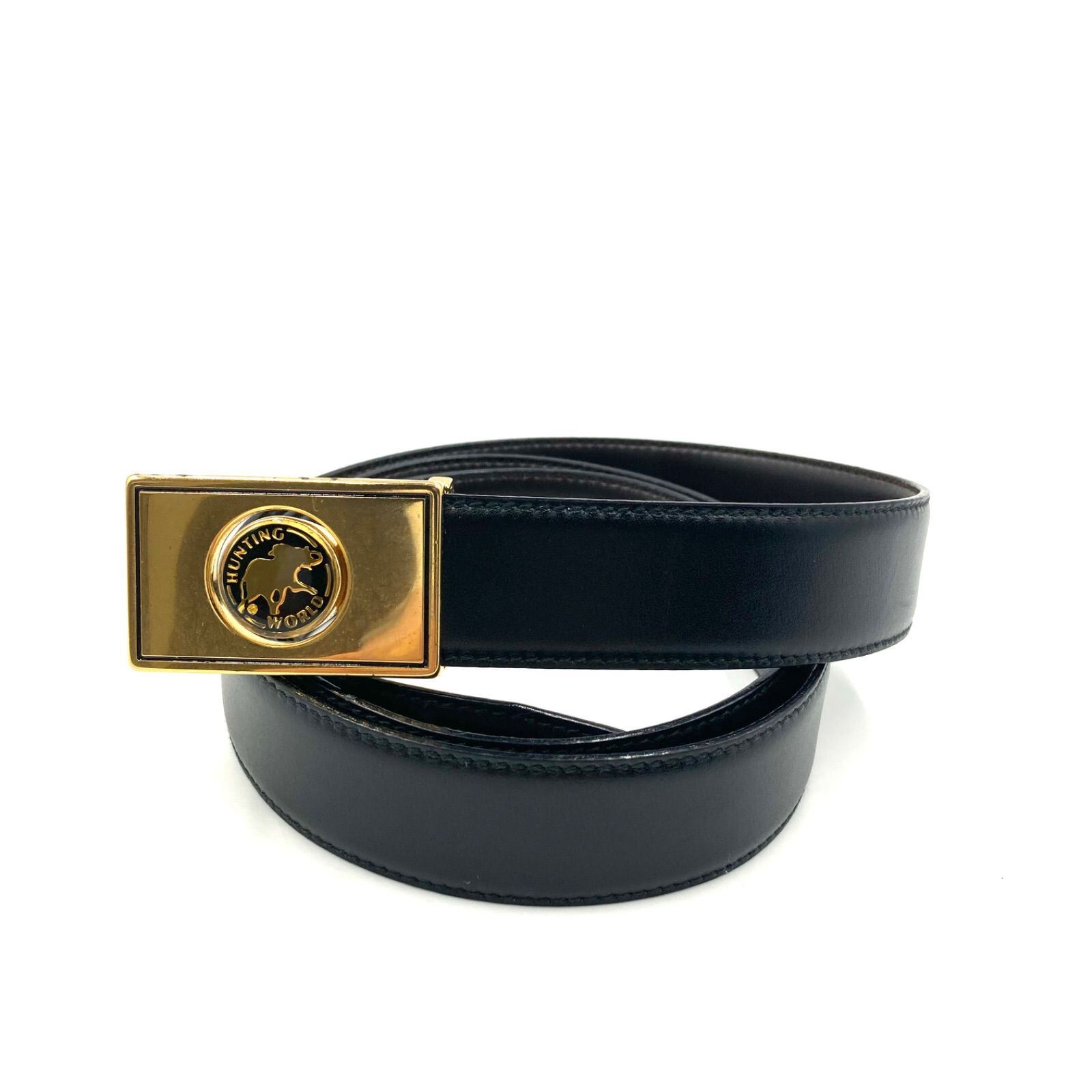 ■未使用品■Hunting World ハンティングワールド リバーシブル レザーベルト ロゴバックル ブラック×ダークブラウン ゴールド金具 イタリア製 ウエスト98?108cm メンズ ビッグサイズ