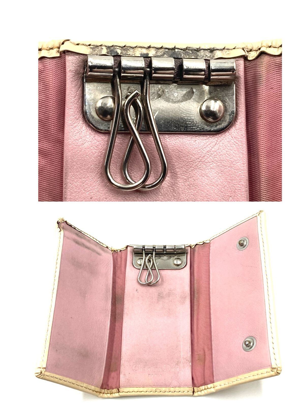 Christian Dior クリスチャンディオール トロッター2番 キーケース ロゴグラム コーティングキャンバス×レザー ベージュ×ピンク シルバー金具 レディース