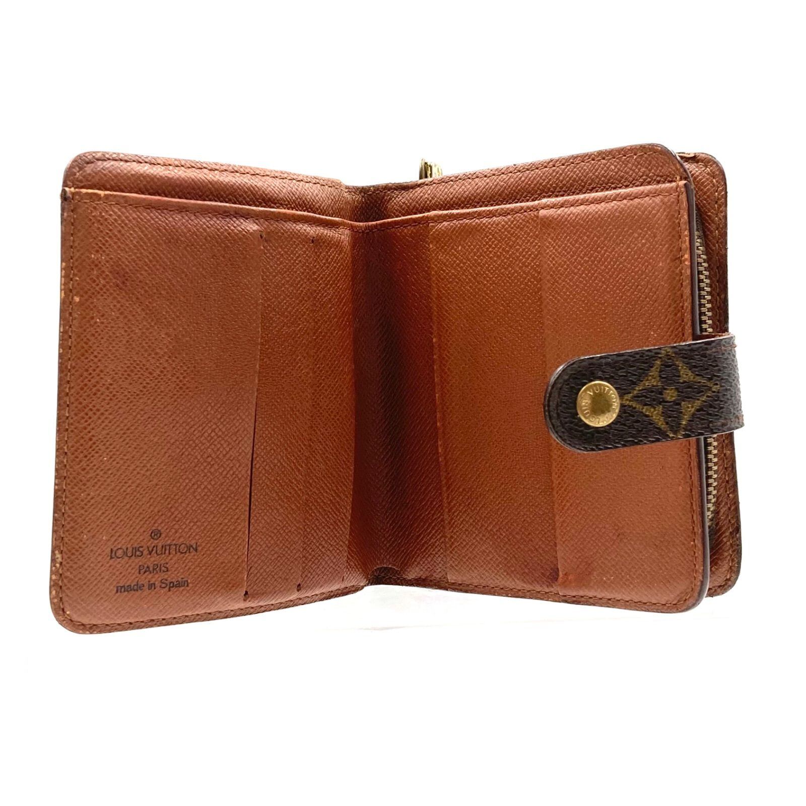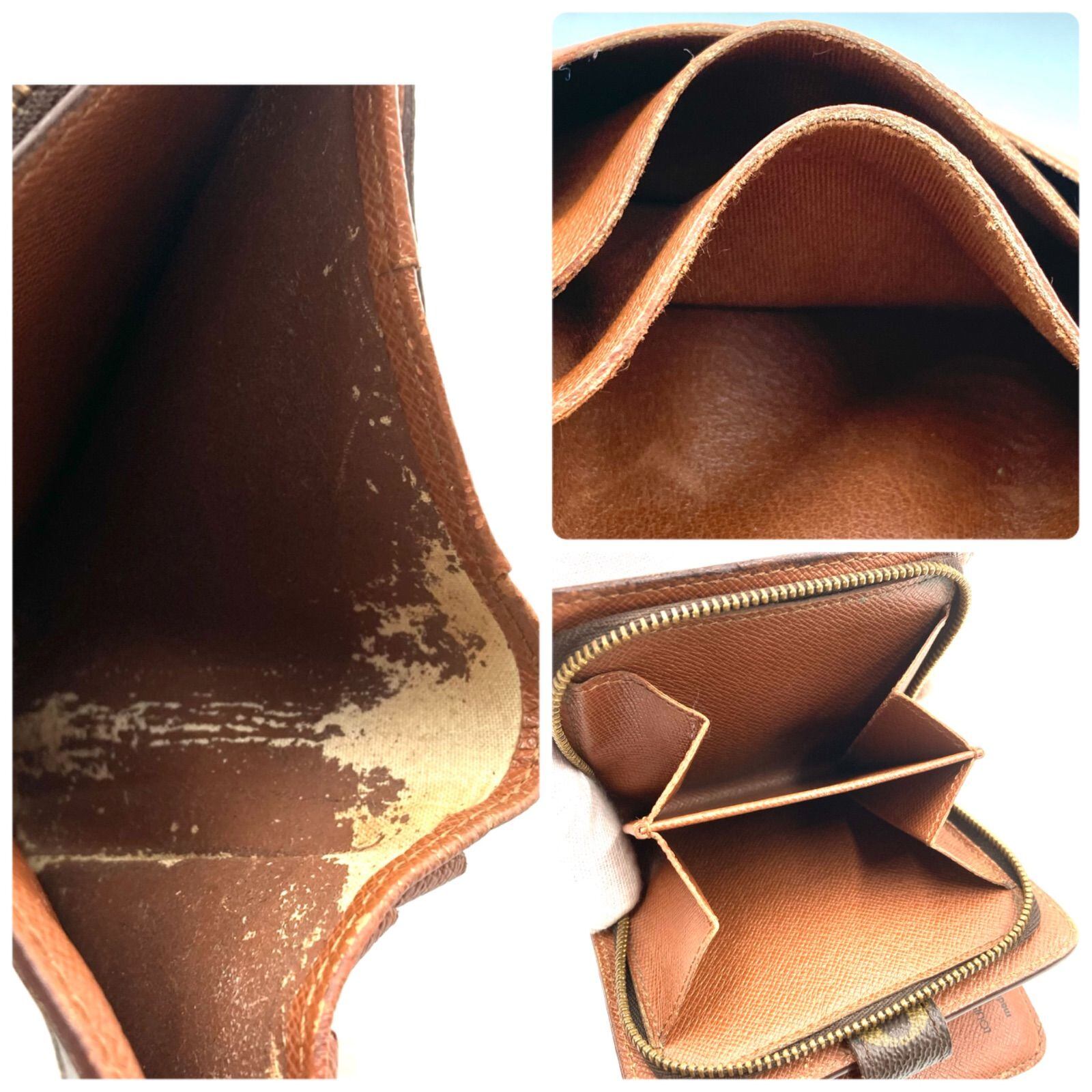 LOUIS VUITTON ルイヴィトン モノグラム コンパクトジップ 二つ折り財布 PVC×レザー ブラウン ゴールド金具 スペイン製 刻印あり