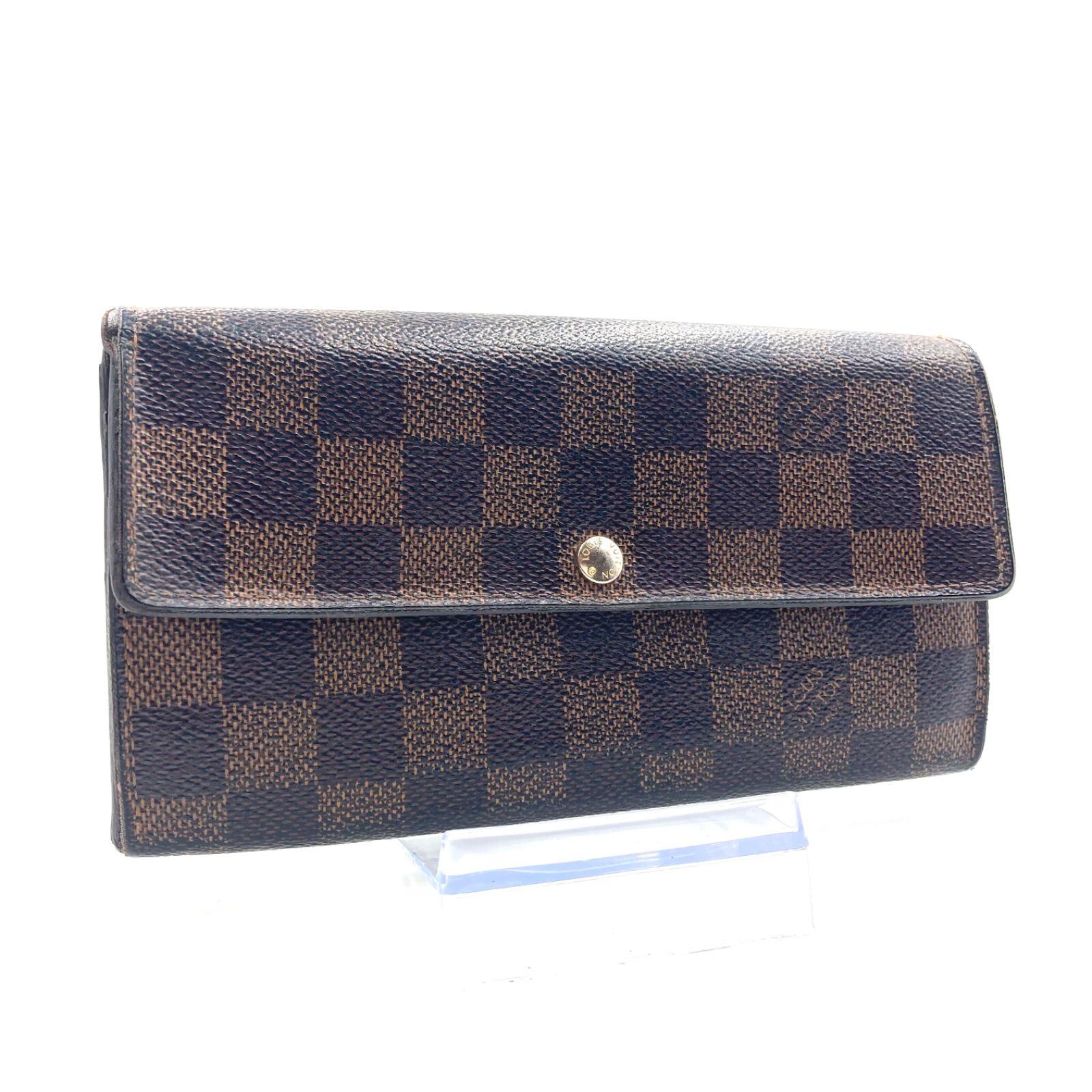 LOUIS VUITTON ルイヴィトン ダミエ エベヌ ポルトフォイユ サラ 長財布 ロングウォレット PVC×レザー ブラウン ゴールド金具 スペイン製 刻印あり