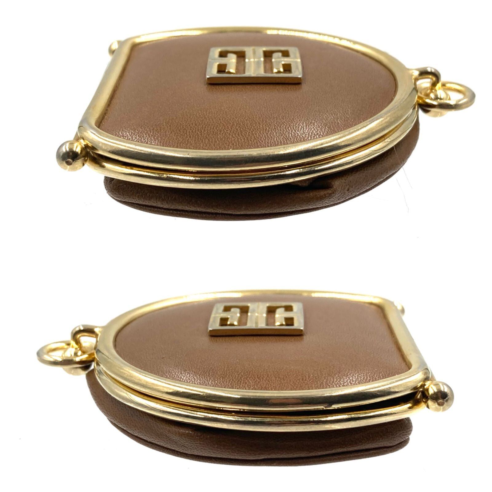 ■美品■GIVENCHY ジバンシィ がま口コインケース 小銭入れ レザー 本革 ブラウン ゴールド金具