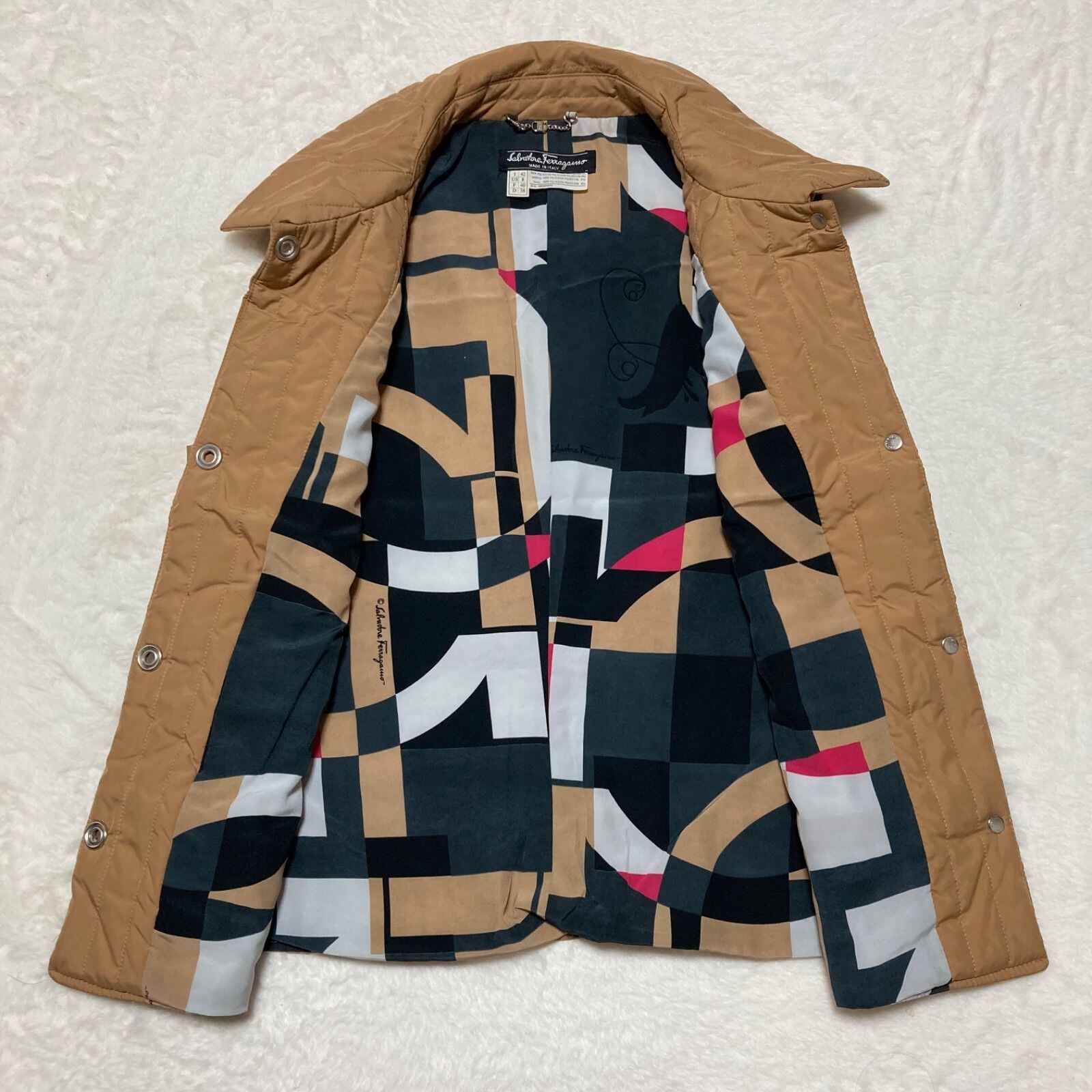 ■美品■Salvatore Ferragamo サルヴァトーレフェラガモ 中綿キルティングベスト イタリア製 ブラウン×裏地ガンチーニ総柄 イタリアサイズ42(M程度) レディース 高級 ハイブランド ラグジュアリー 秋冬 | ブランドオキナ