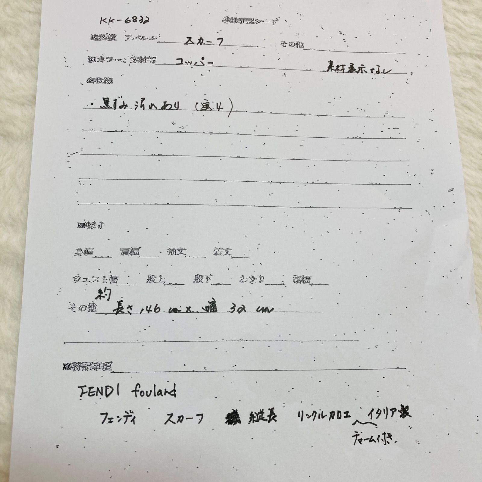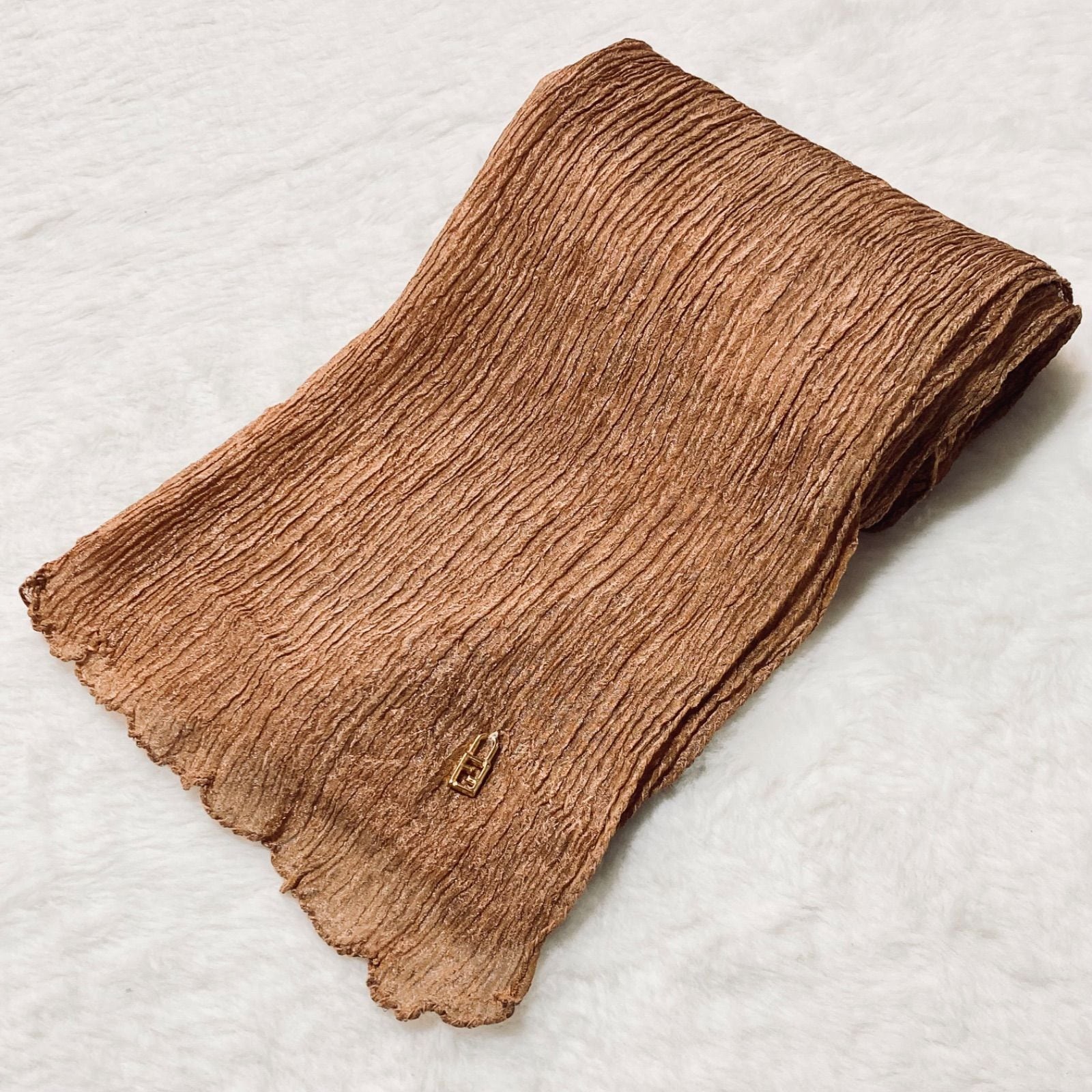 FENDI フェンディ ストール ロングスカーフ リンクル加工 FFロゴチャーム付き タグあり イタリア製 コッパーブラウン 高級 ラグジュアリー ハイブランド | ブランドオキナ