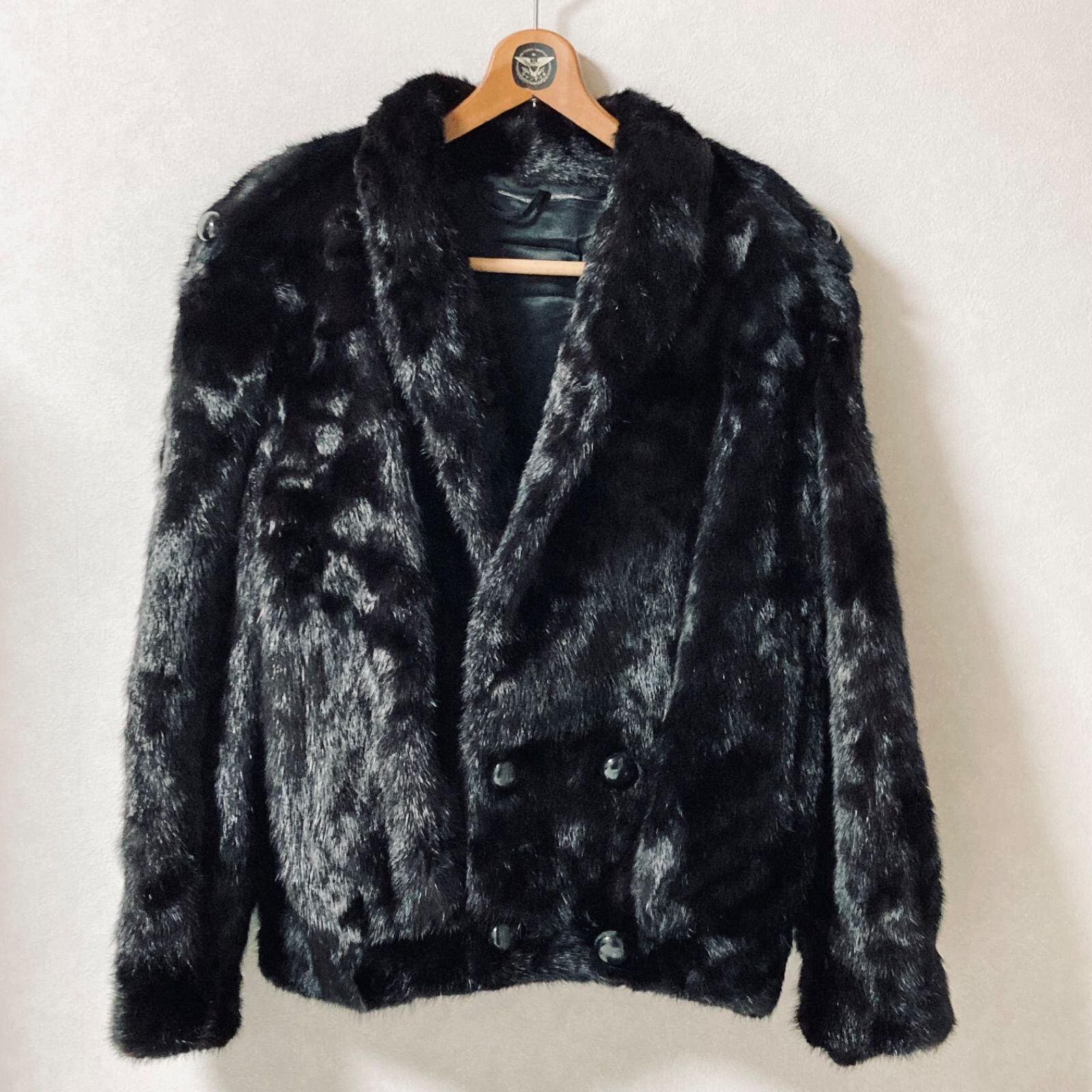 ■良品■稀少■SAGA MINK サガミンク ミンクファーダブルジャケット メンズ 表記M(実寸XL程度) オーバーサイズ ブラック 4つボタン エポーレット ショールカラー 本切羽 高級 ラグジュアリー 秋冬 防寒 | ブランドオキナ